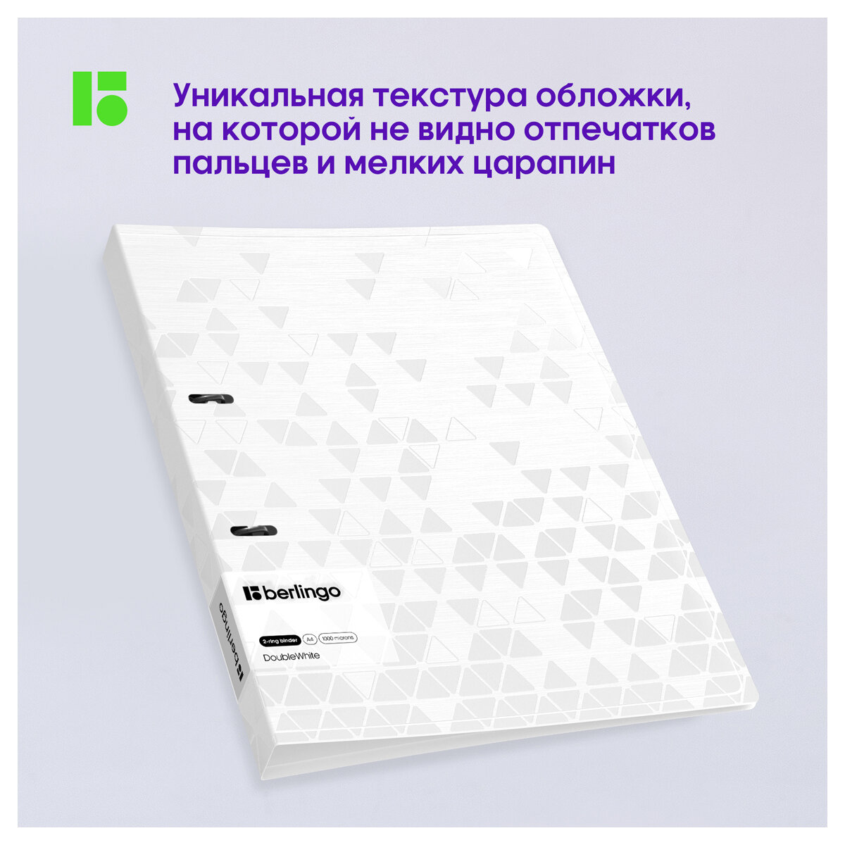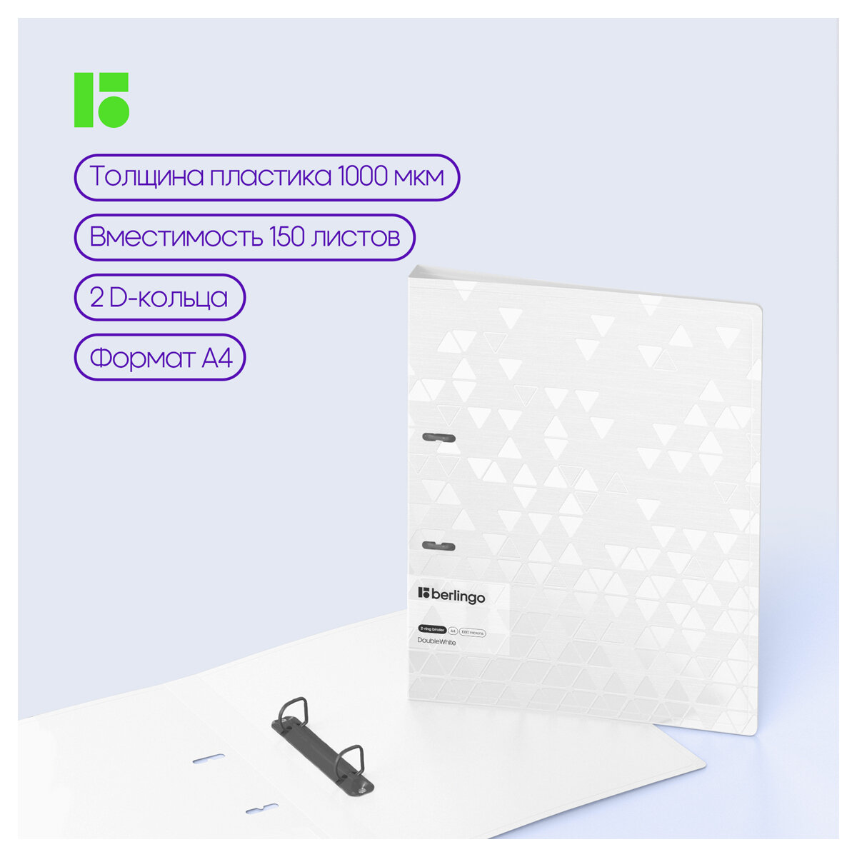 Папка на 2 кольцах Berlingo "DoubleWhite", 24мм, 1000мкм, белая, D-кольца, с внутр. карманом