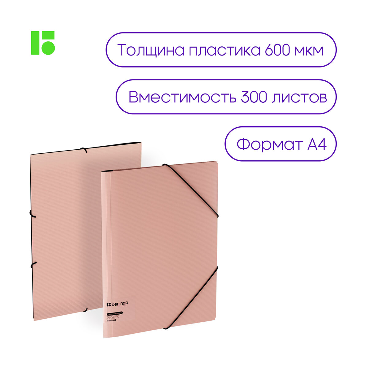 Папка на резинке Berlingo "Instinct" А4, пластик, 600мкм, цвет фламинго