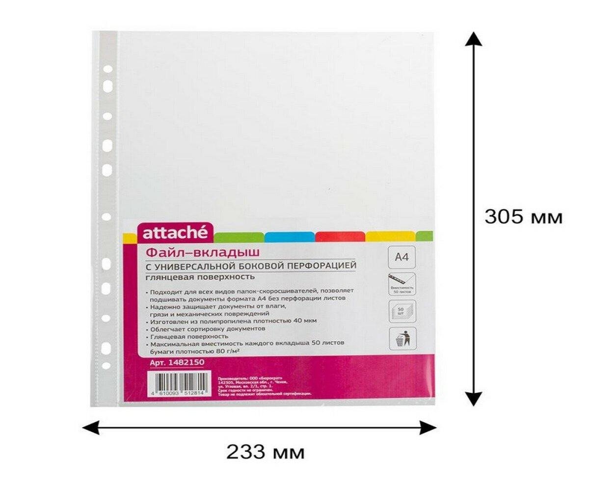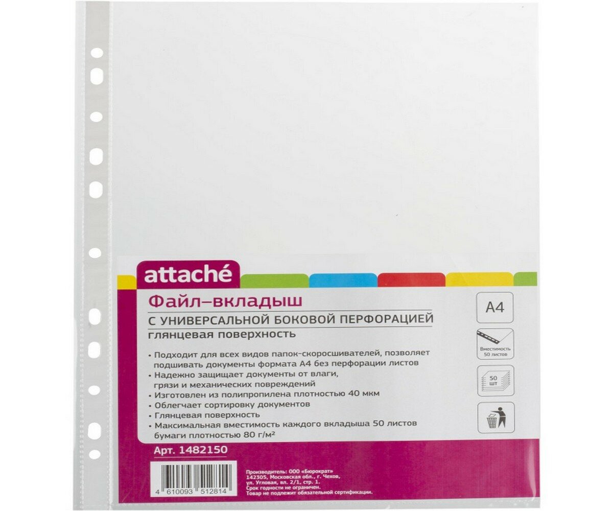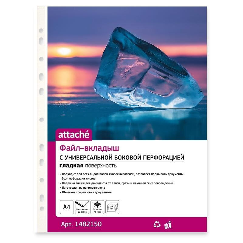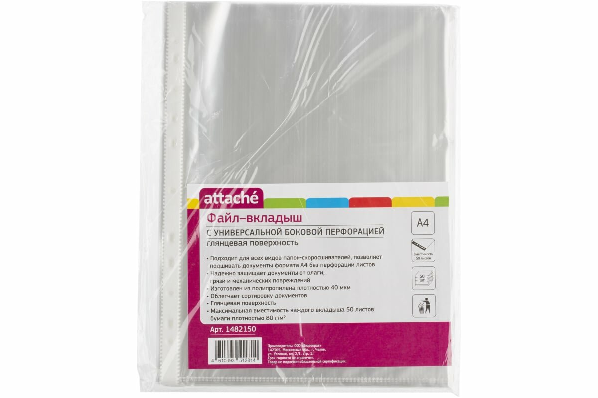 Файл-вкладыш А4 40мкм Attache с перфорацией 50 шт/уп интересное: