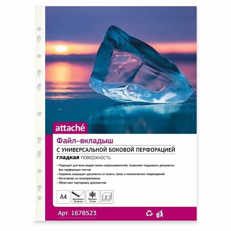 Купить Файл-вкладыш А4, 70мкм, Attache, гладкий, 50шт/уп
