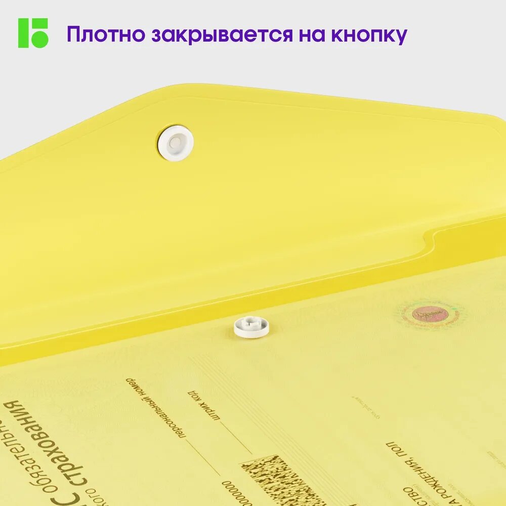 Папка-конверт на кнопке Berlingo "No Secret", С6, 200мкм, желтая, 24 штук, 352671