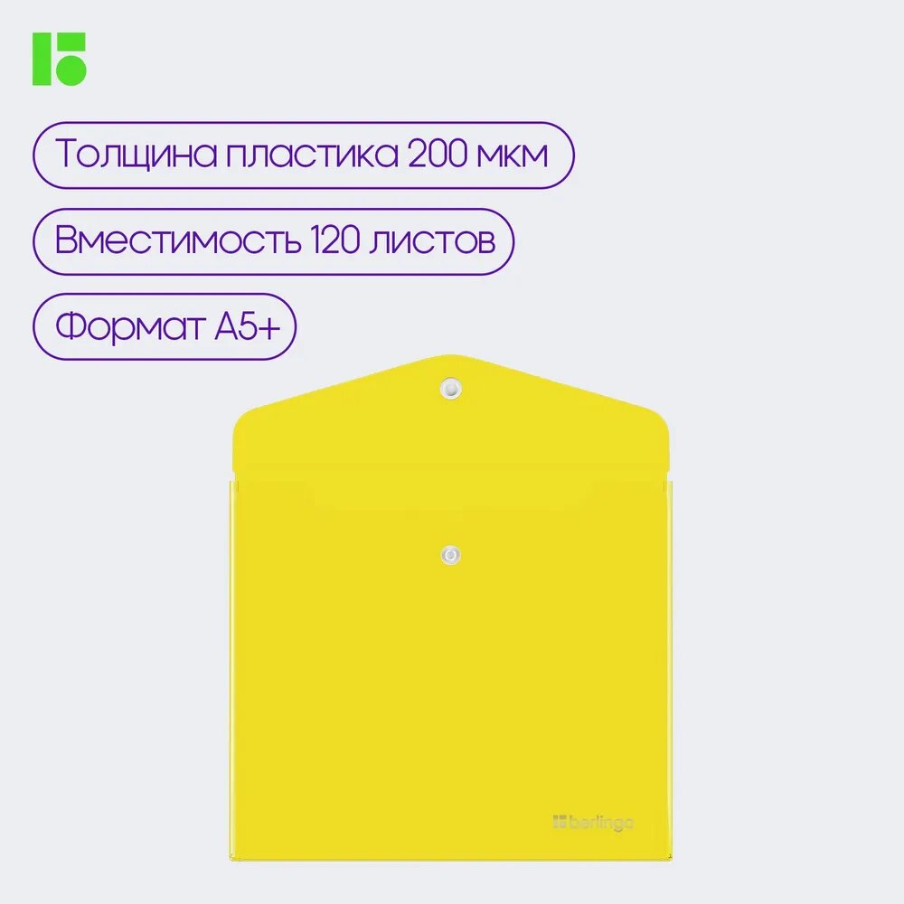 Купить Папка-конверт на кнопке Berlingo "No Secret", А5+, 200мкм, ассорти, 5 шт. в упаковке