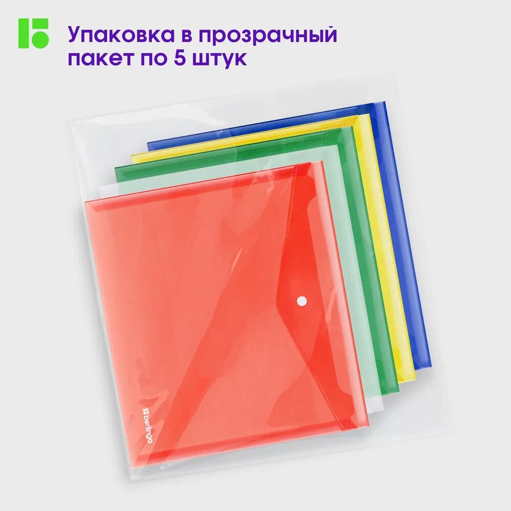 Папка-конверт на кнопке Berlingo "No Secret", В5, 200мкм, ассорти, 5 шт. в упаковке