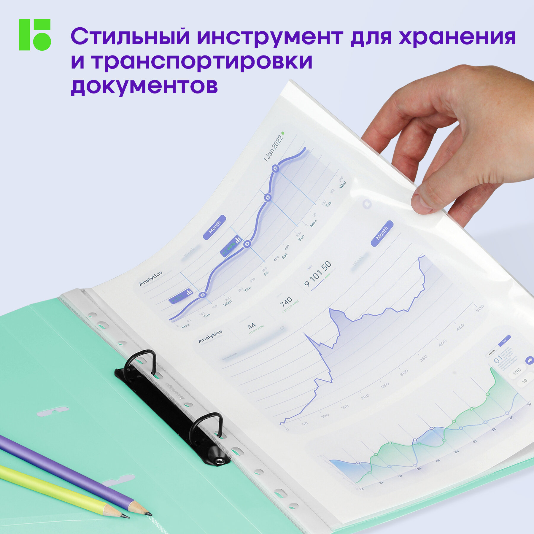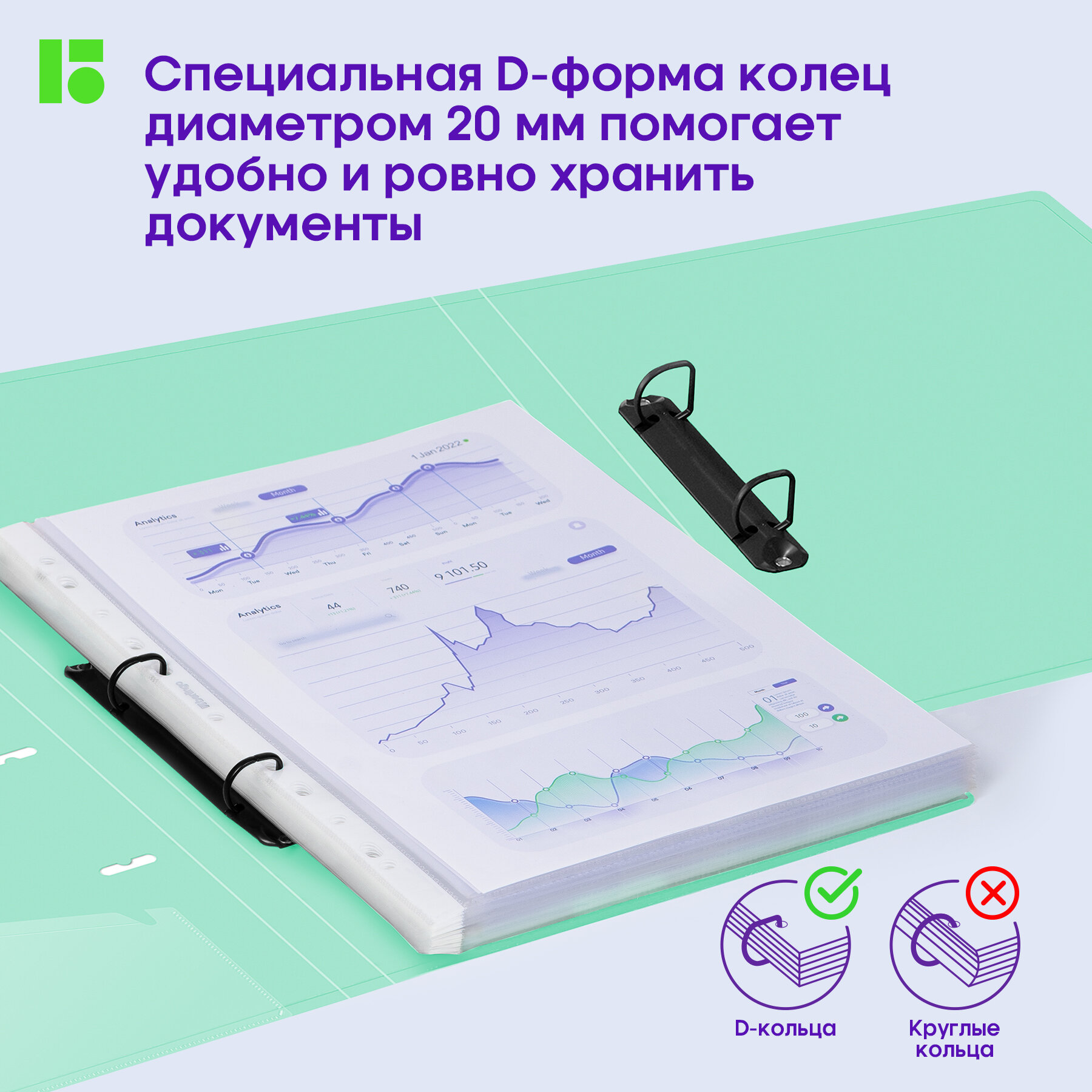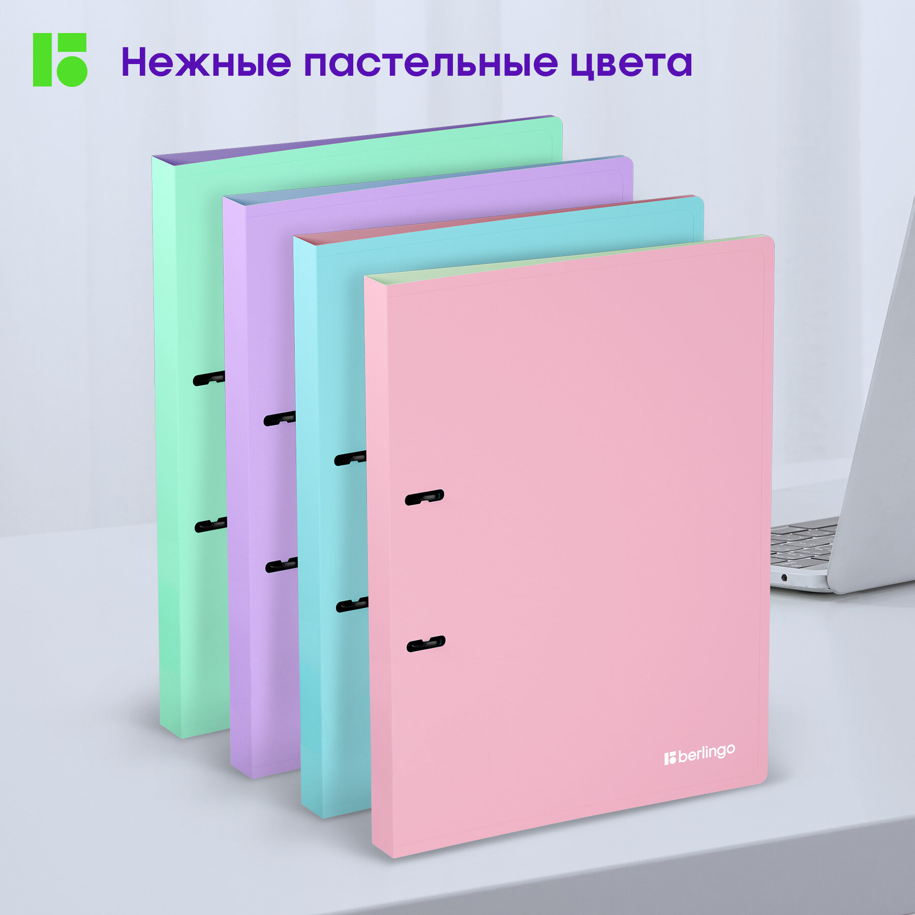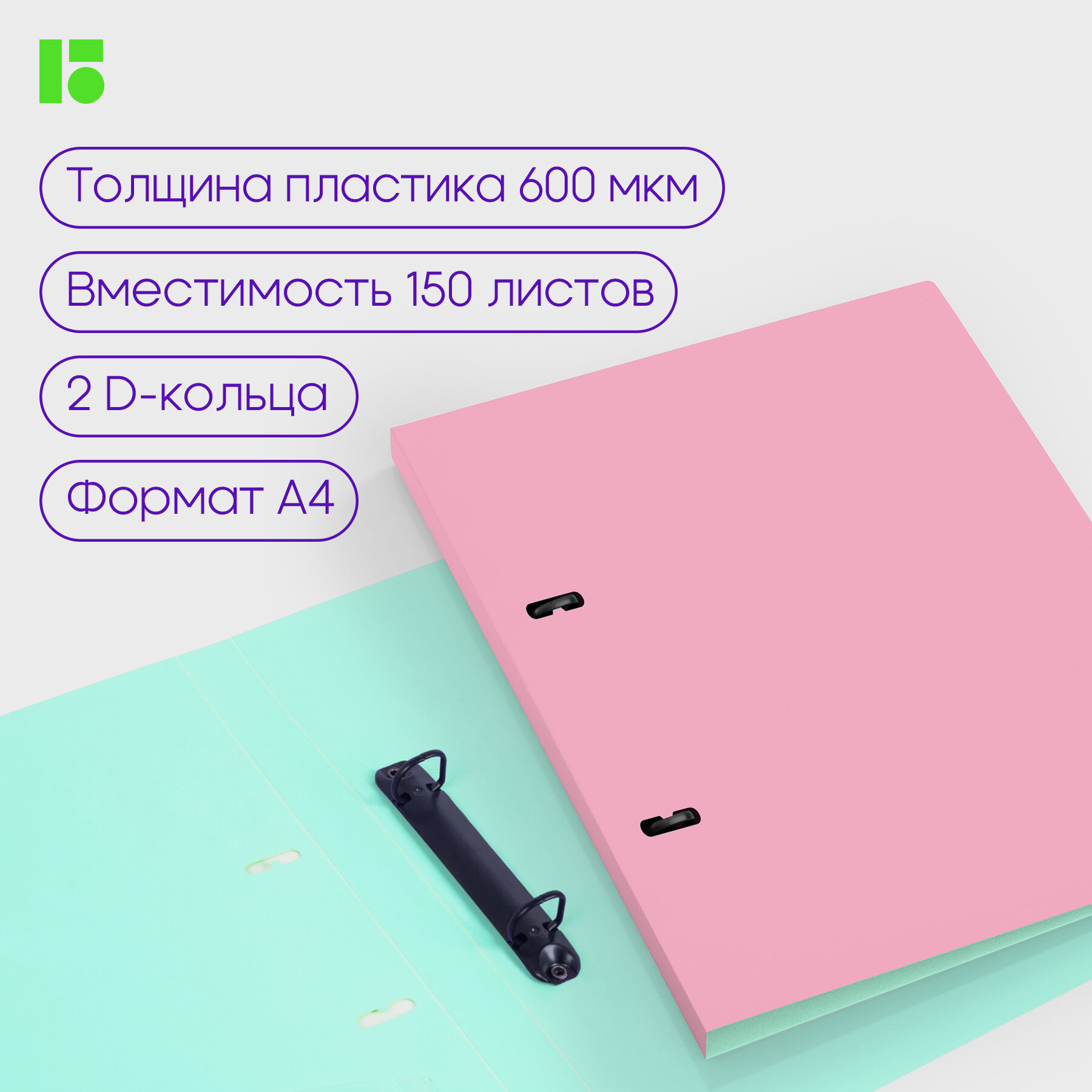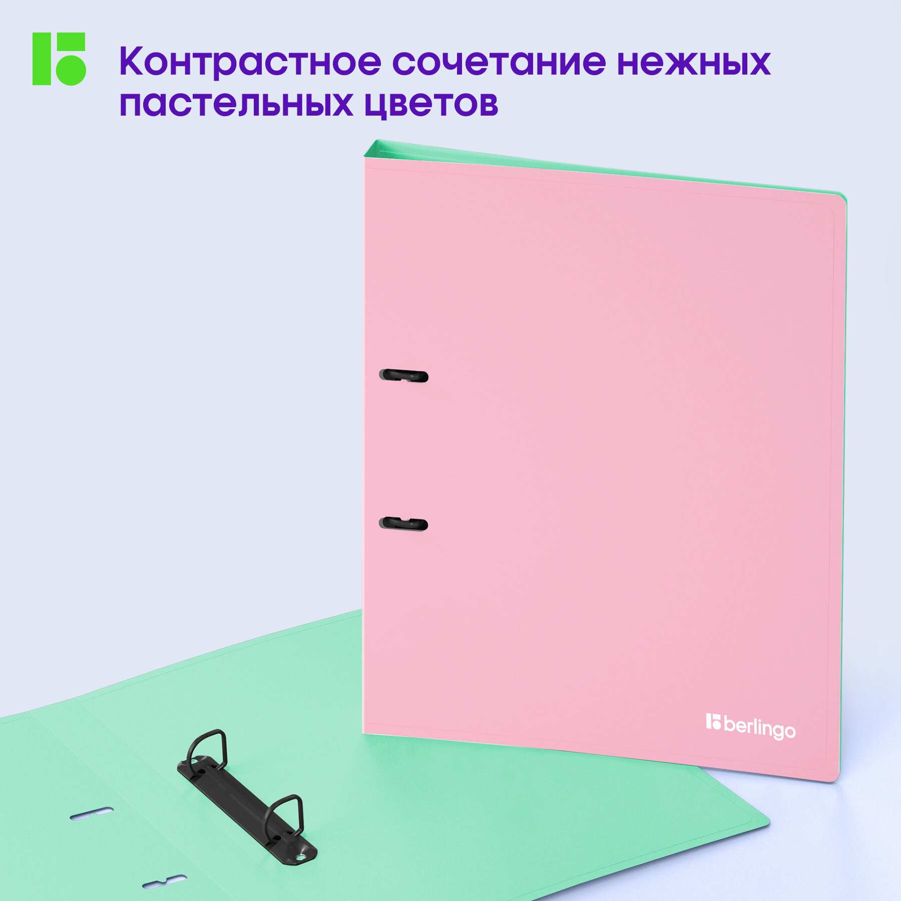 Папка на 2 кольцах Berlingo "Haze" А4, 24мм, 600мкм, D-кольца, с внутр. карманом, мятная, софт-тач