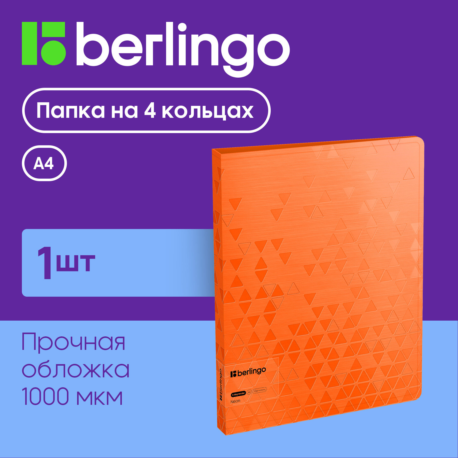 Купить Папка на 4 кольцах Berlingo "Neon", 24мм, 1000мкм, оранжевый неон, D-кольца, с внутр. карманом