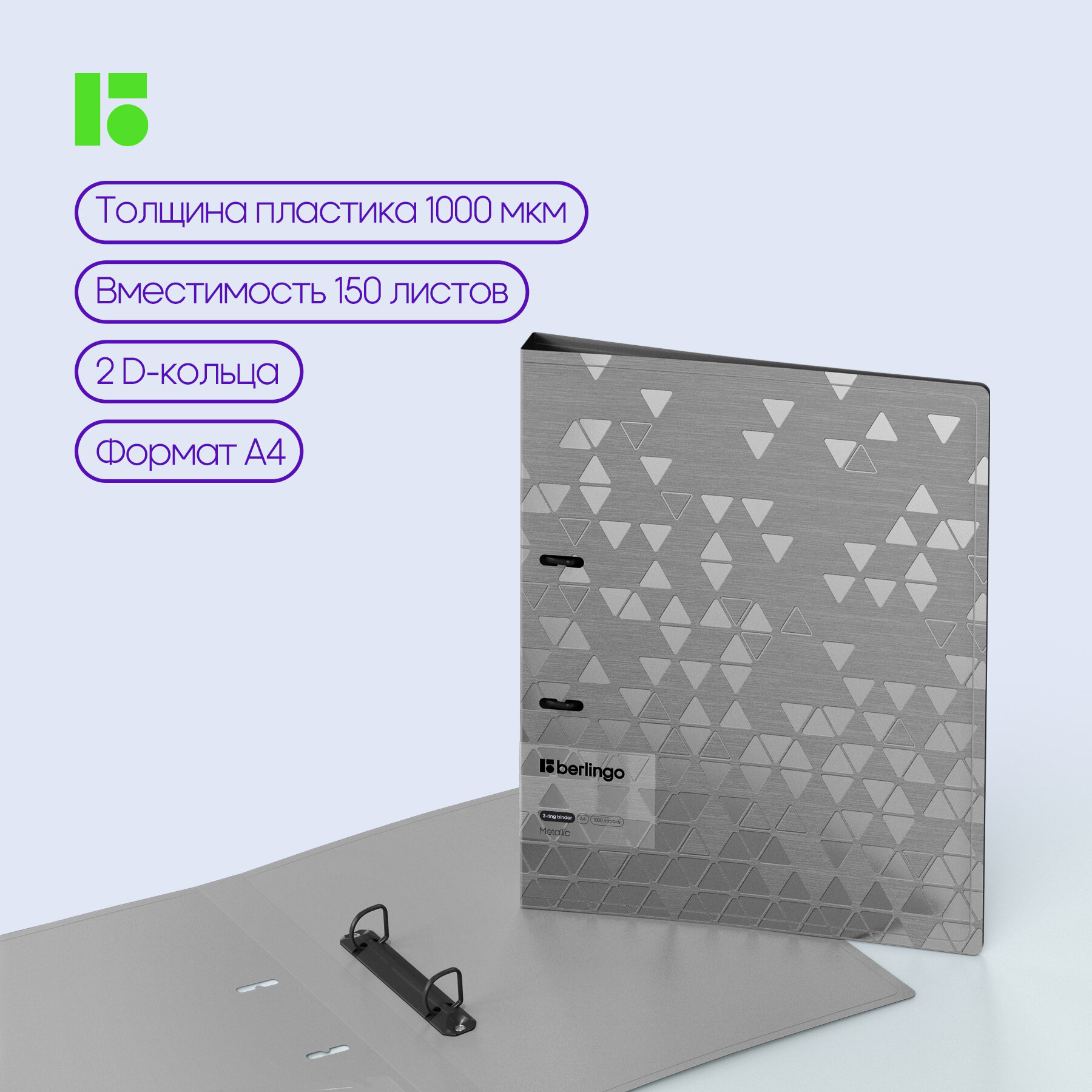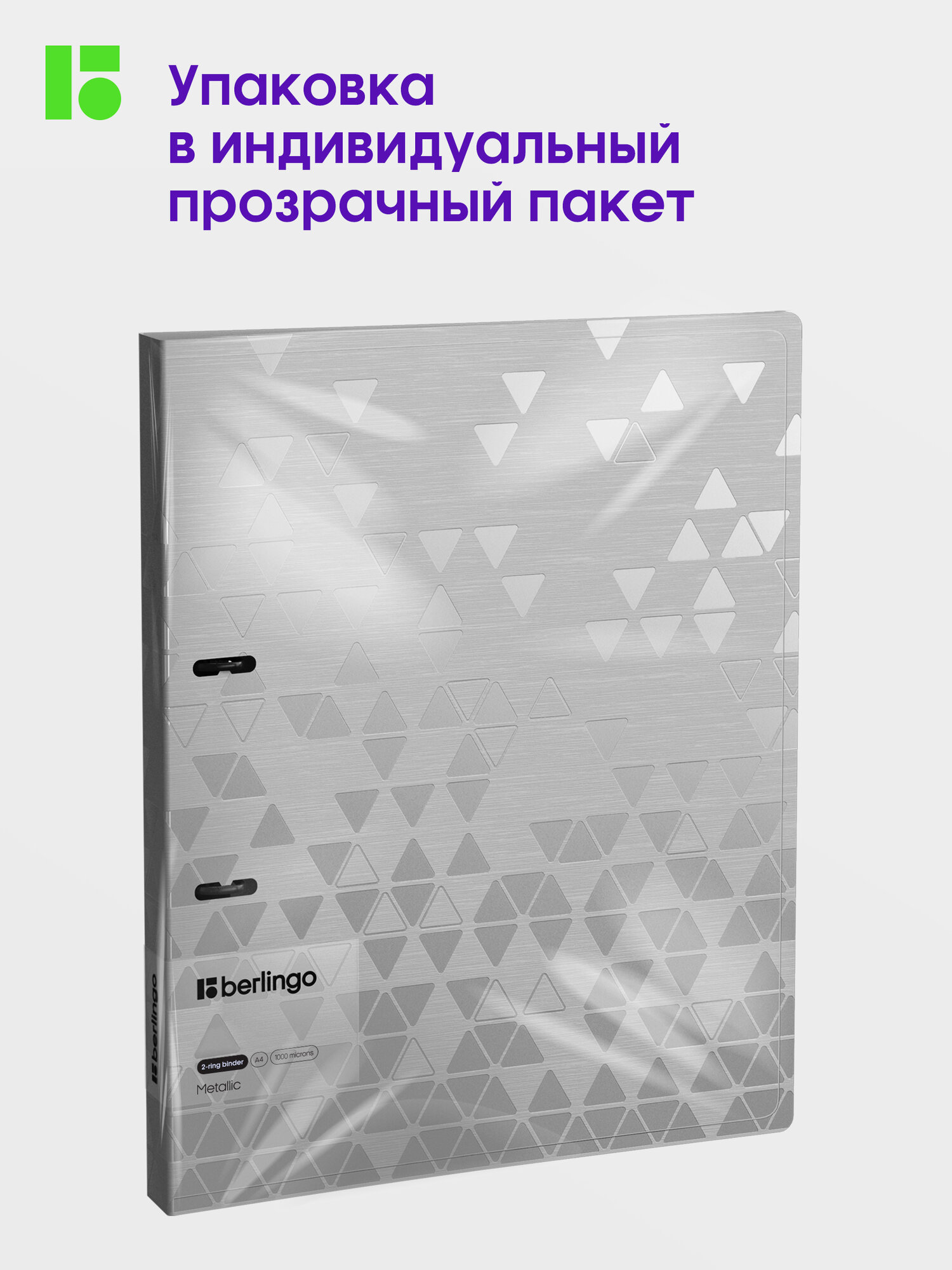 Купить Папка на 2 кольцах Berlingo Metallic, 24мм, 1000мкм, серебряный металлик, D-кольца, с внутренним карманом