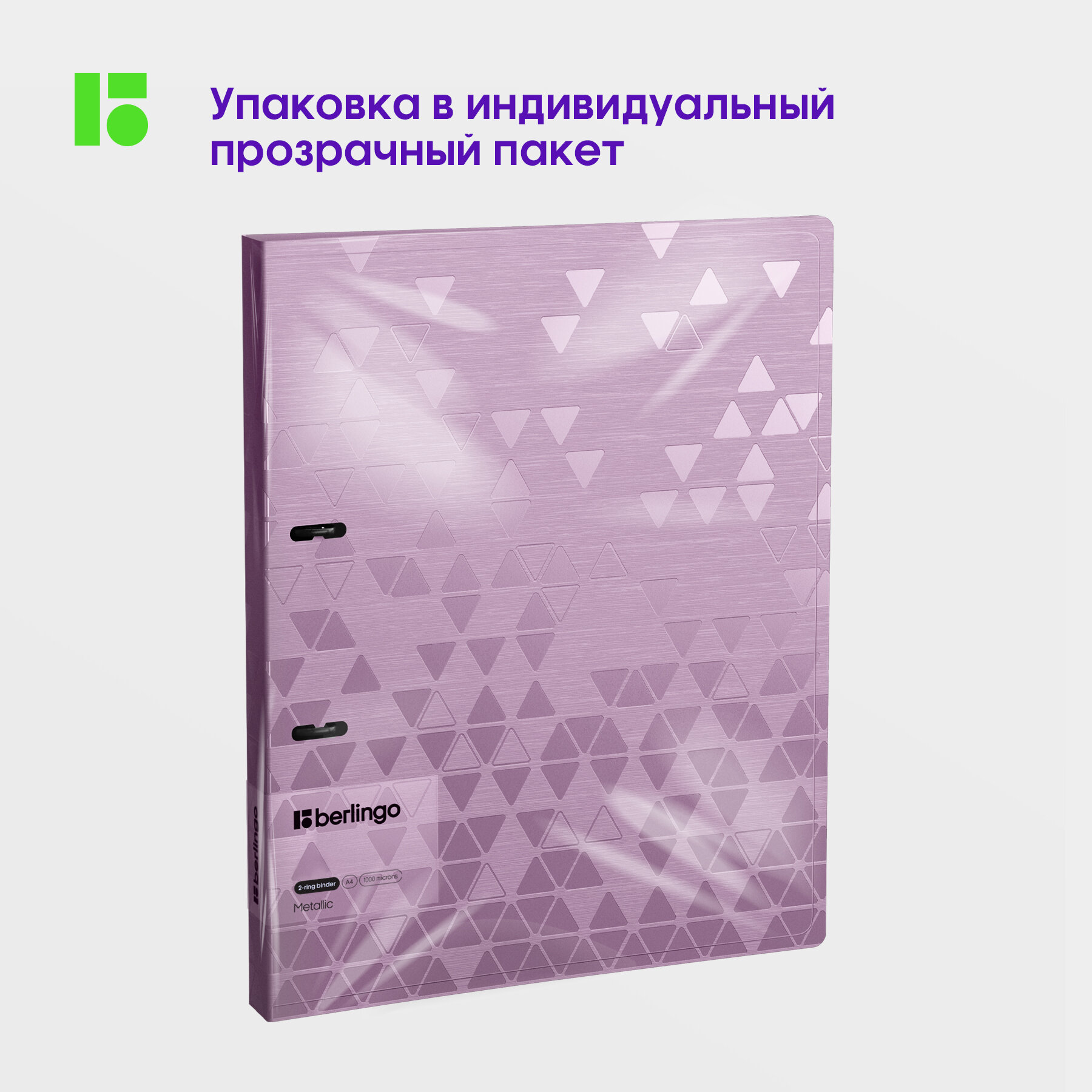 Купить Папка на 2 кольцах Berlingo "Metallic", 24мм, 1000мкм, сиреневый металлик, D-кольца, с внутр. карманом