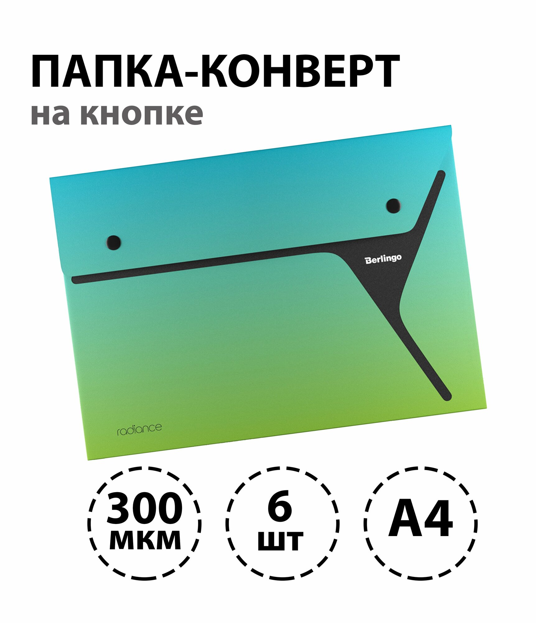 Купить Набор 6 шт. - Папка-конверт на 2 кнопках Berlingo "xProject. Radiance" А4, 300 мкм, голубой/зеленый градиент