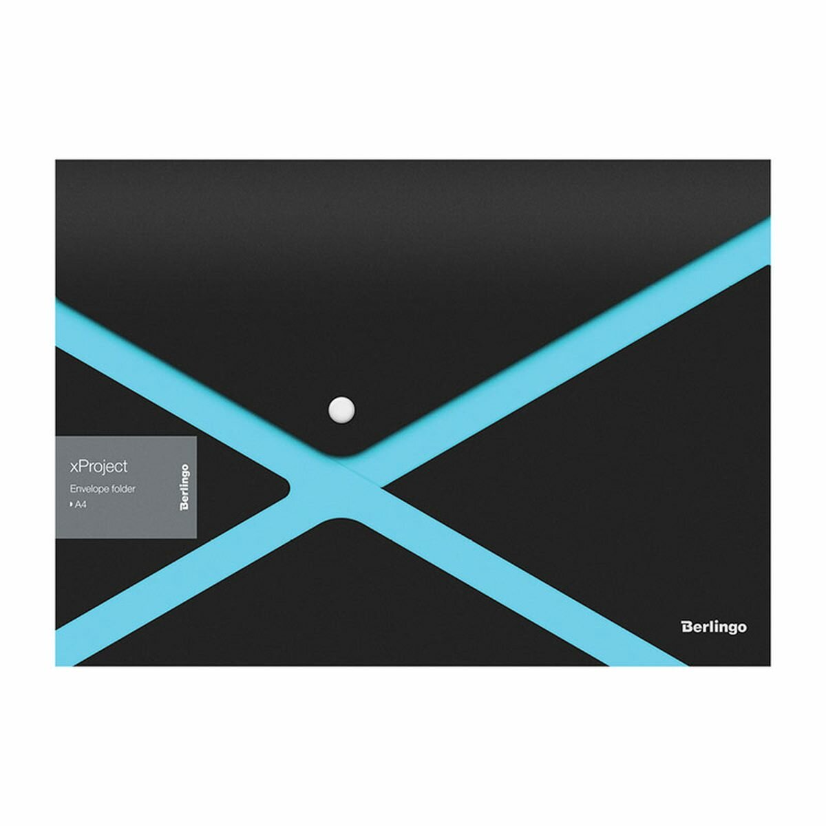 Папка-конверт Berlingo "xProject", на кнопке, черно-голубая, 300 мкм (EFb_A4231)