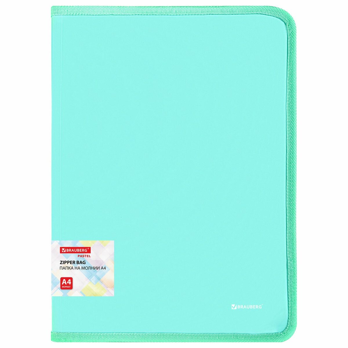 Купить Папка на молнии пластиковая А4 Brauberg Pastel, 330х240мм, 600мкм, объемная, цвет мятный