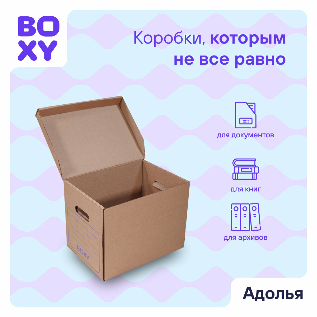 Картонная архивная коробка для офиса и дома адолья BOXY, гофрокартон, 34х25х26 см, 10 шт в упаковке интересное: