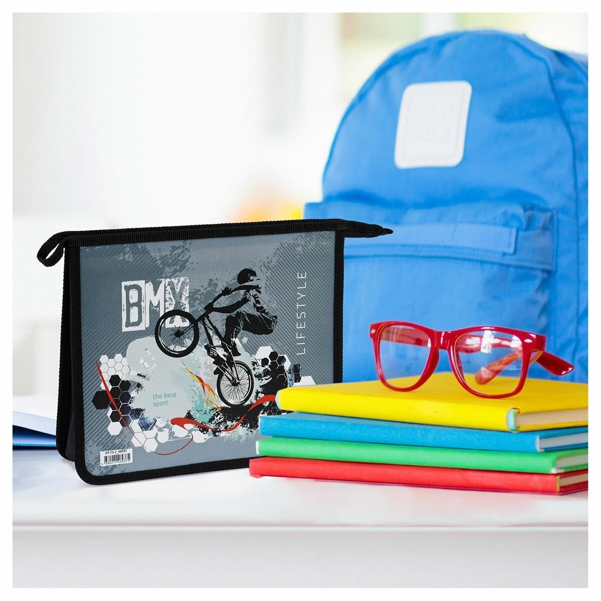 Папка для тетрадей OfficeSpace "ArtSpace", BMX, 2 отделения, А5, 240х200х55 мм, пластик, на молнии (ПТ-73-2_48937) интересное: