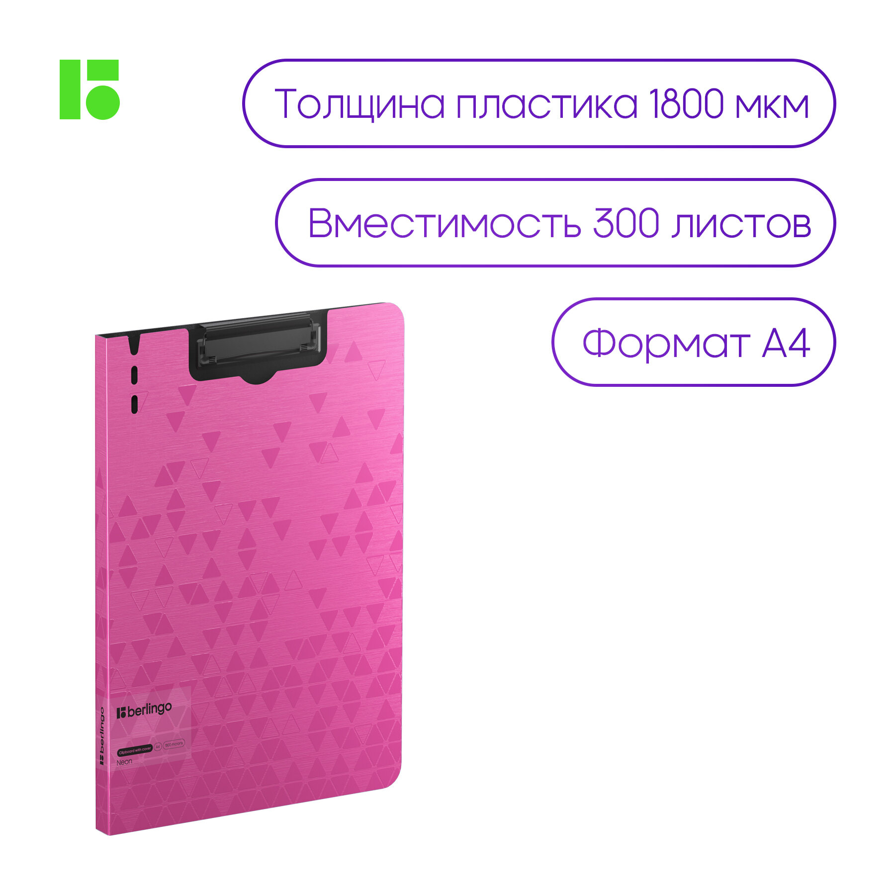 Купить Планшет с зажимом для бумаги Berlingo Neon папка для выступлений, доска клипборд А4, розовый неон