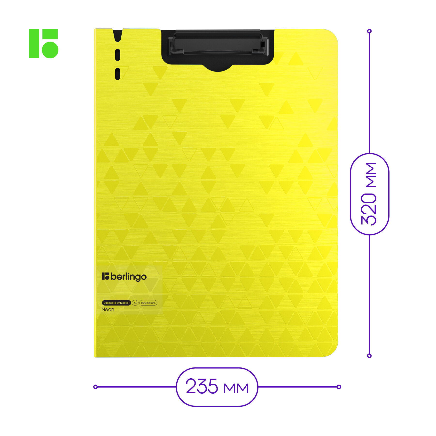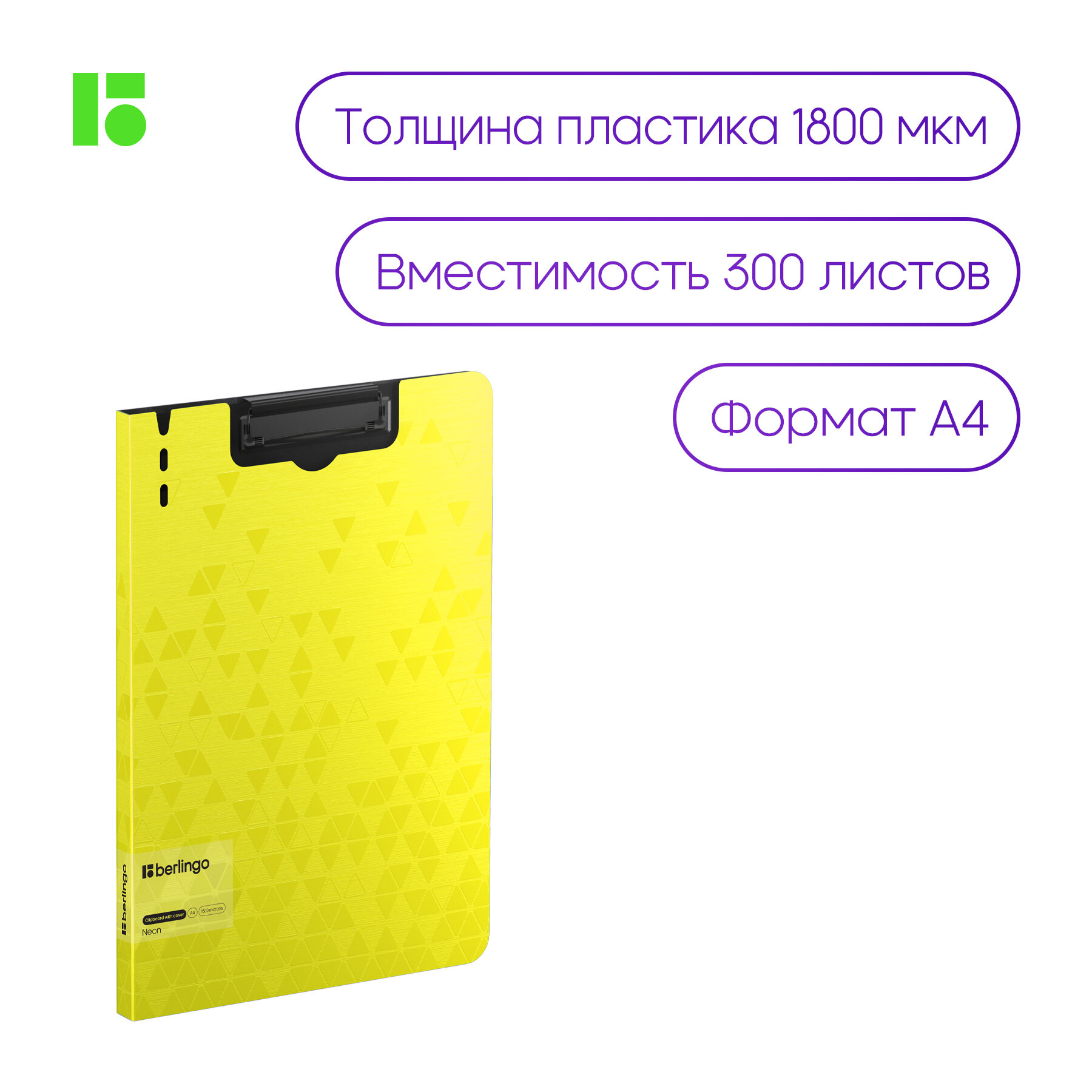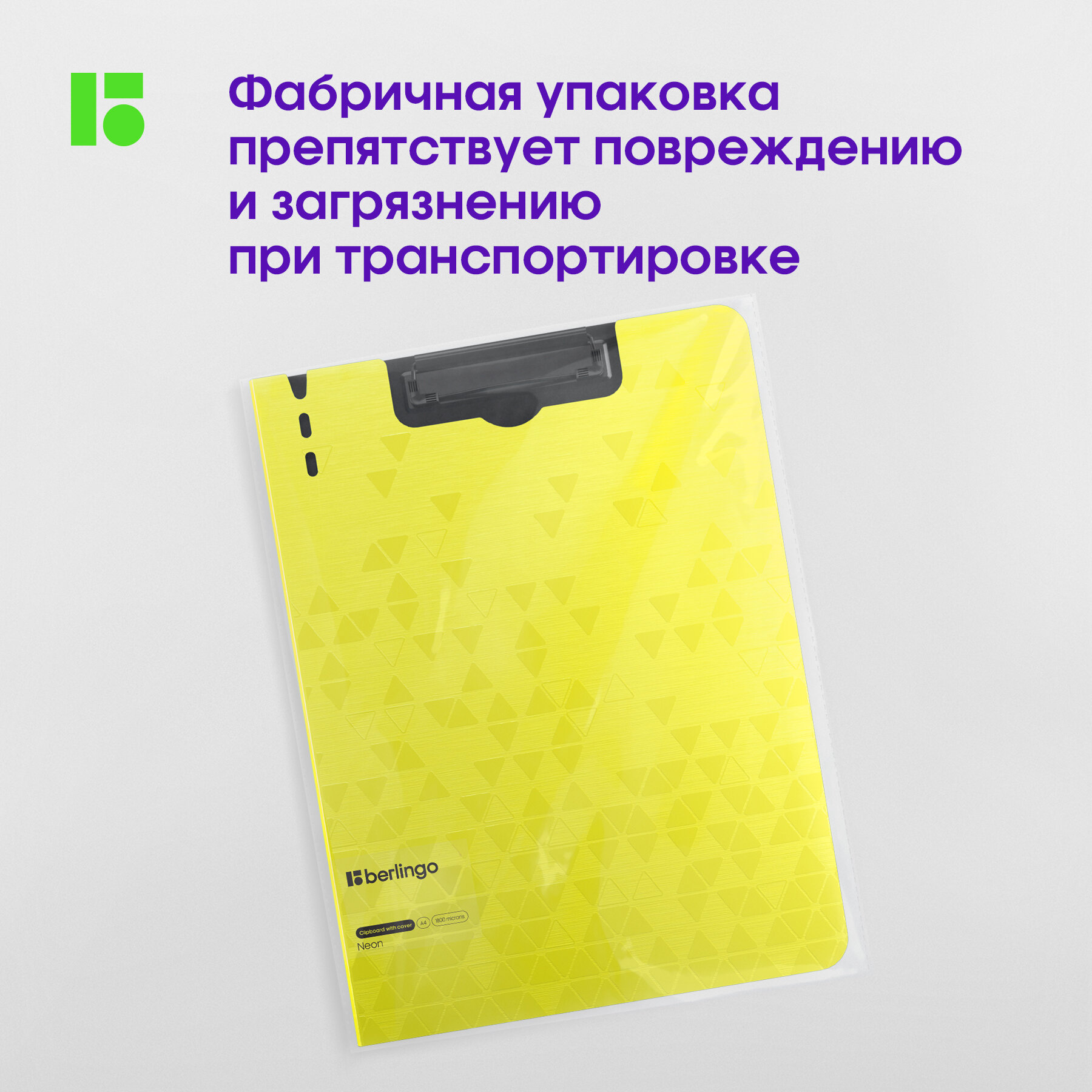 Папка-планшет с зажимом Berlingo "Neon" A4, пластик (полифом), 1800 мкм, желтый неон интересное: