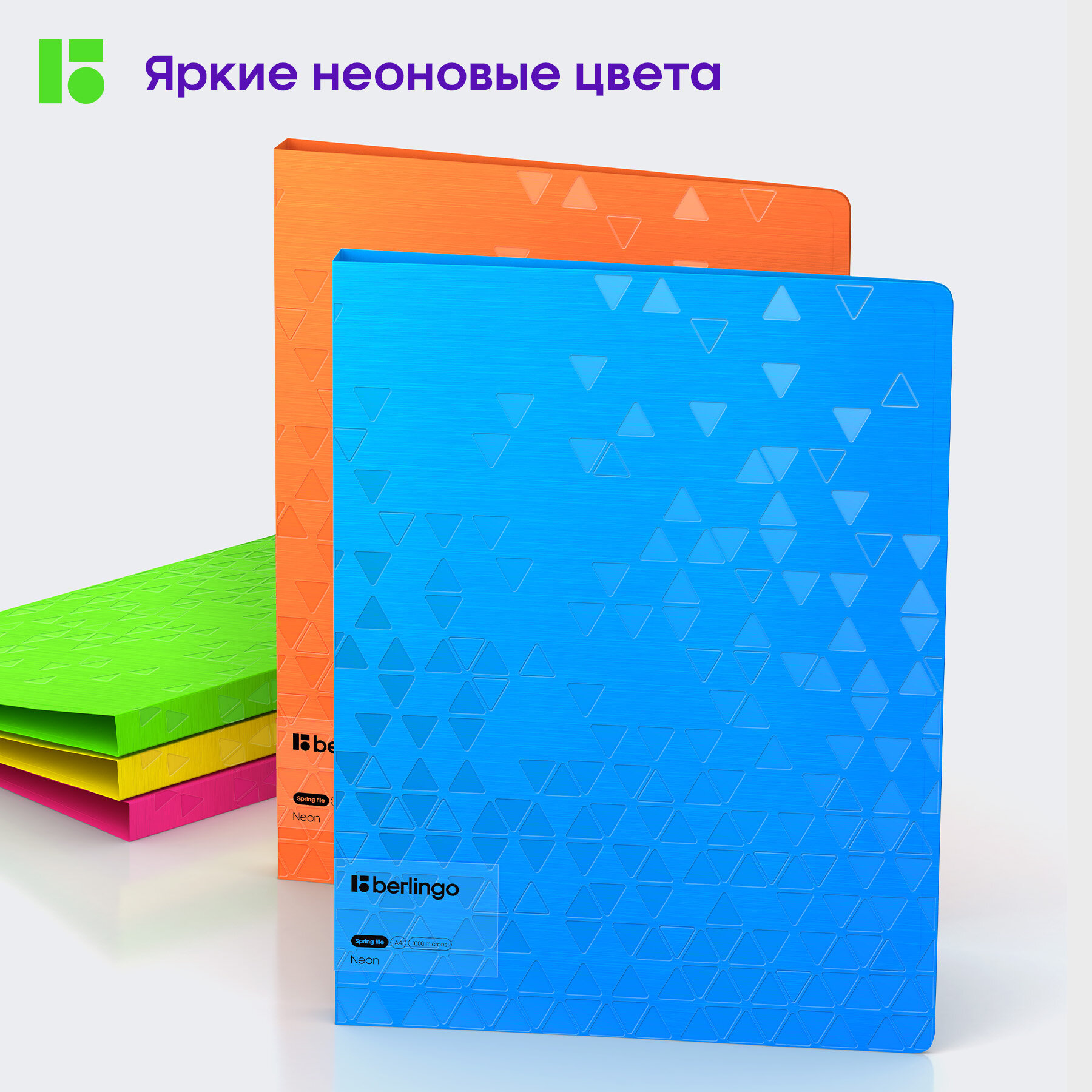 Папка с пружинным скоросшивателем Berlingo "Neon", 17мм, 1000мкм, голубой неон, с внутр. карманом интересное: