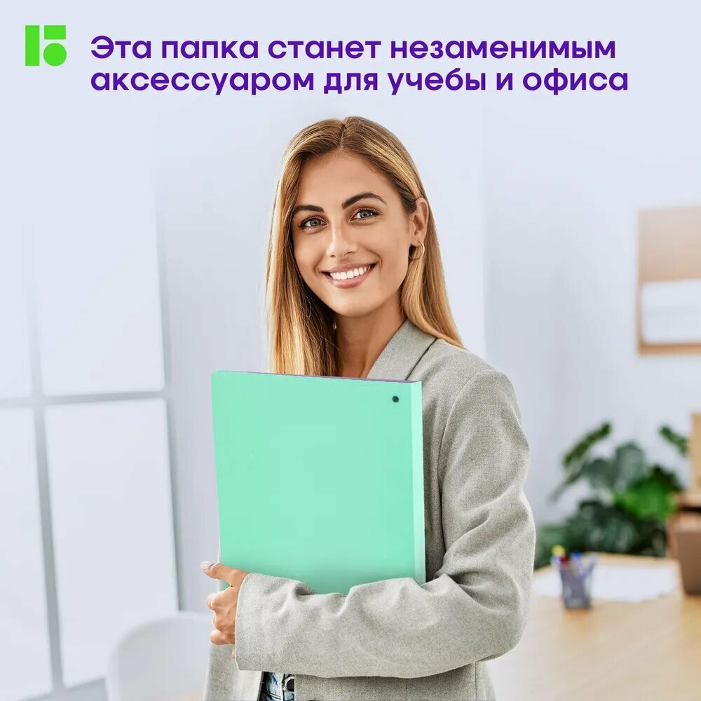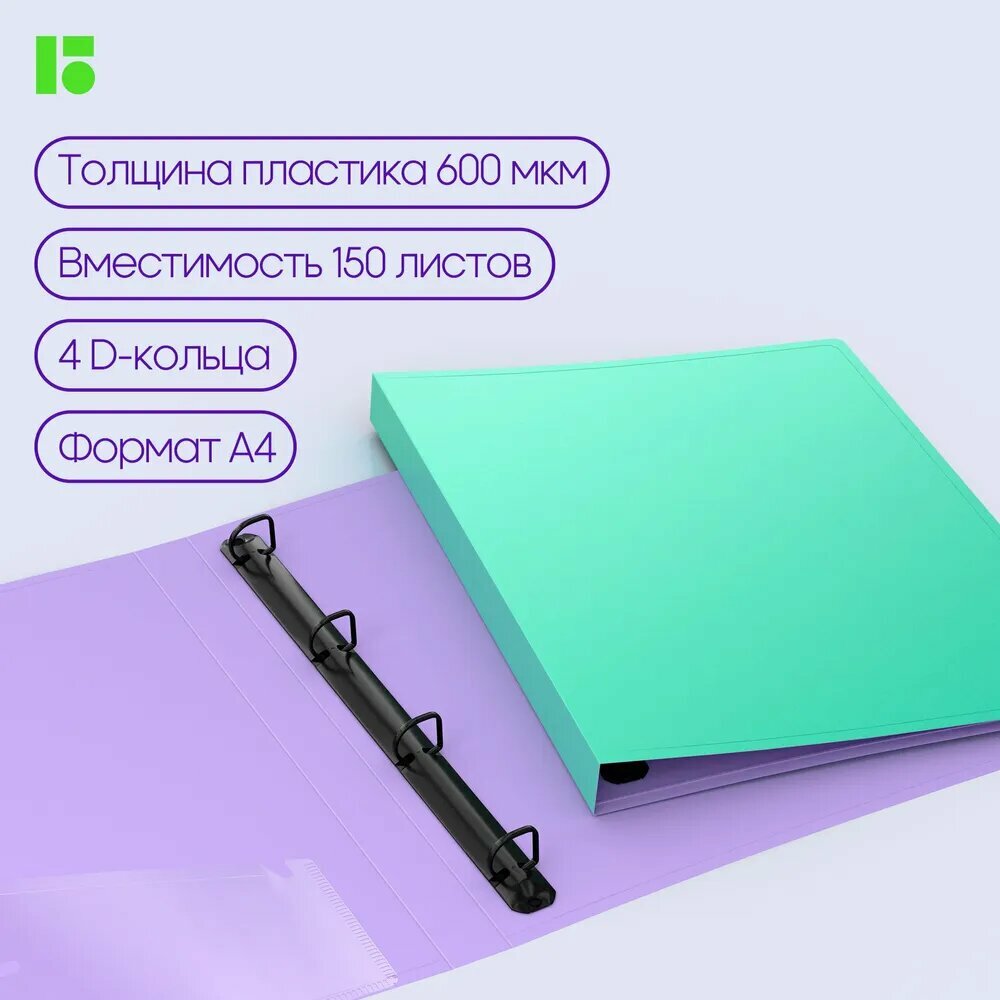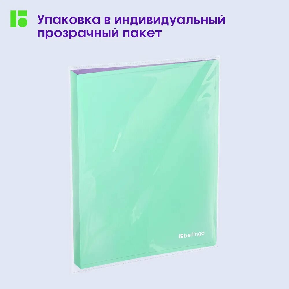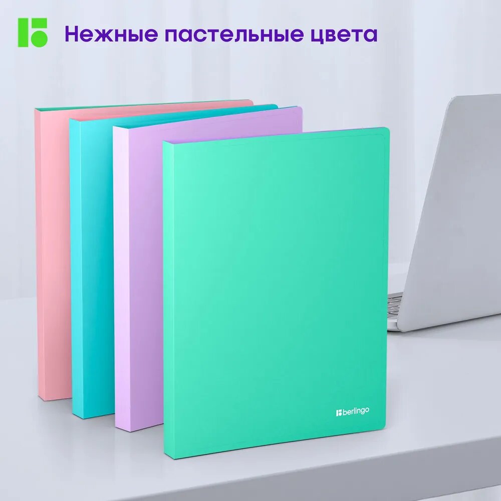 Купить Папка на 4 кольцах Berlingo "Haze" А4, 24мм, 600мкм, D-кольца, с внутр. карманом, мятная, софт-тач