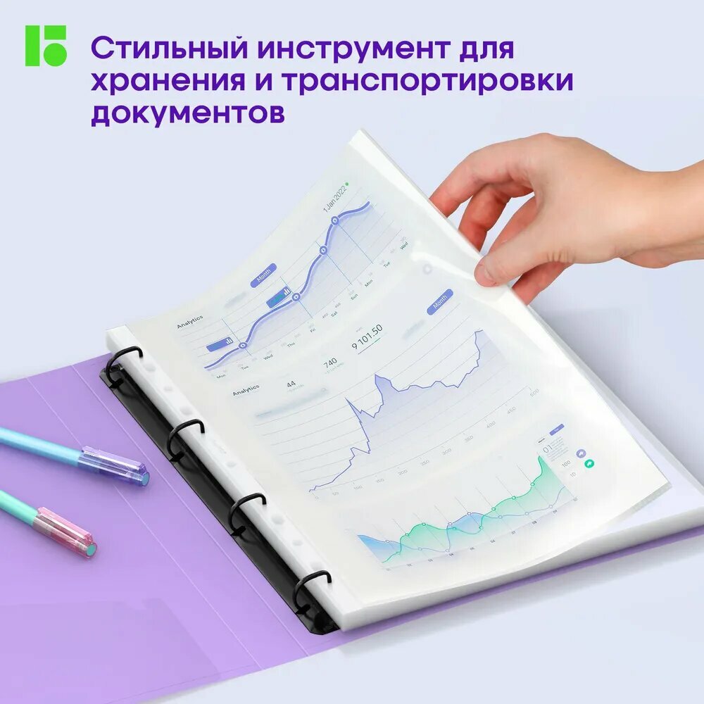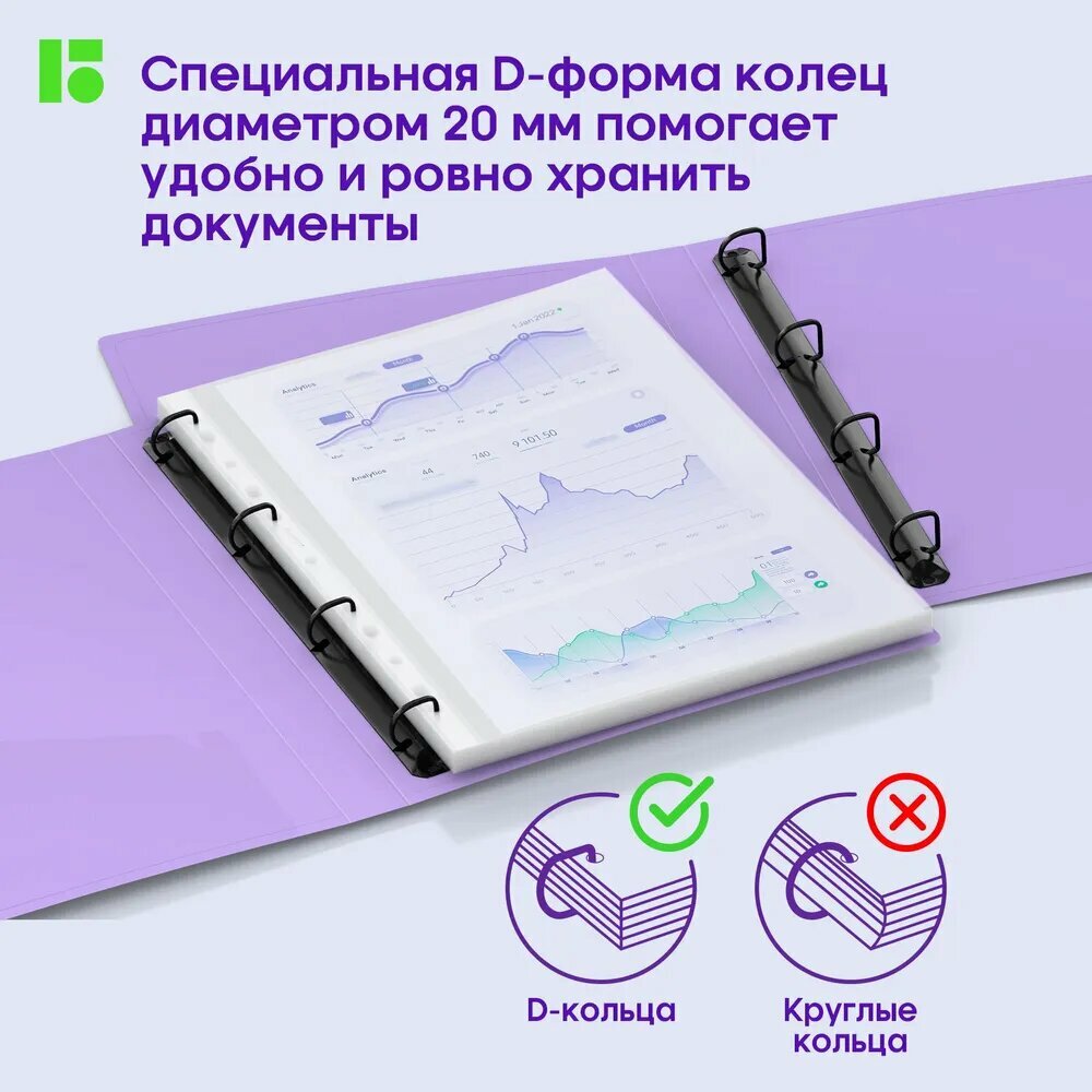 Папка на 4-х кольцах Berlingo Haze (А4, 24мм, 600мкм, D-кольца, с внутр. карманом, сиреневая, софт-тач) (RB4_4D924), 96шт.