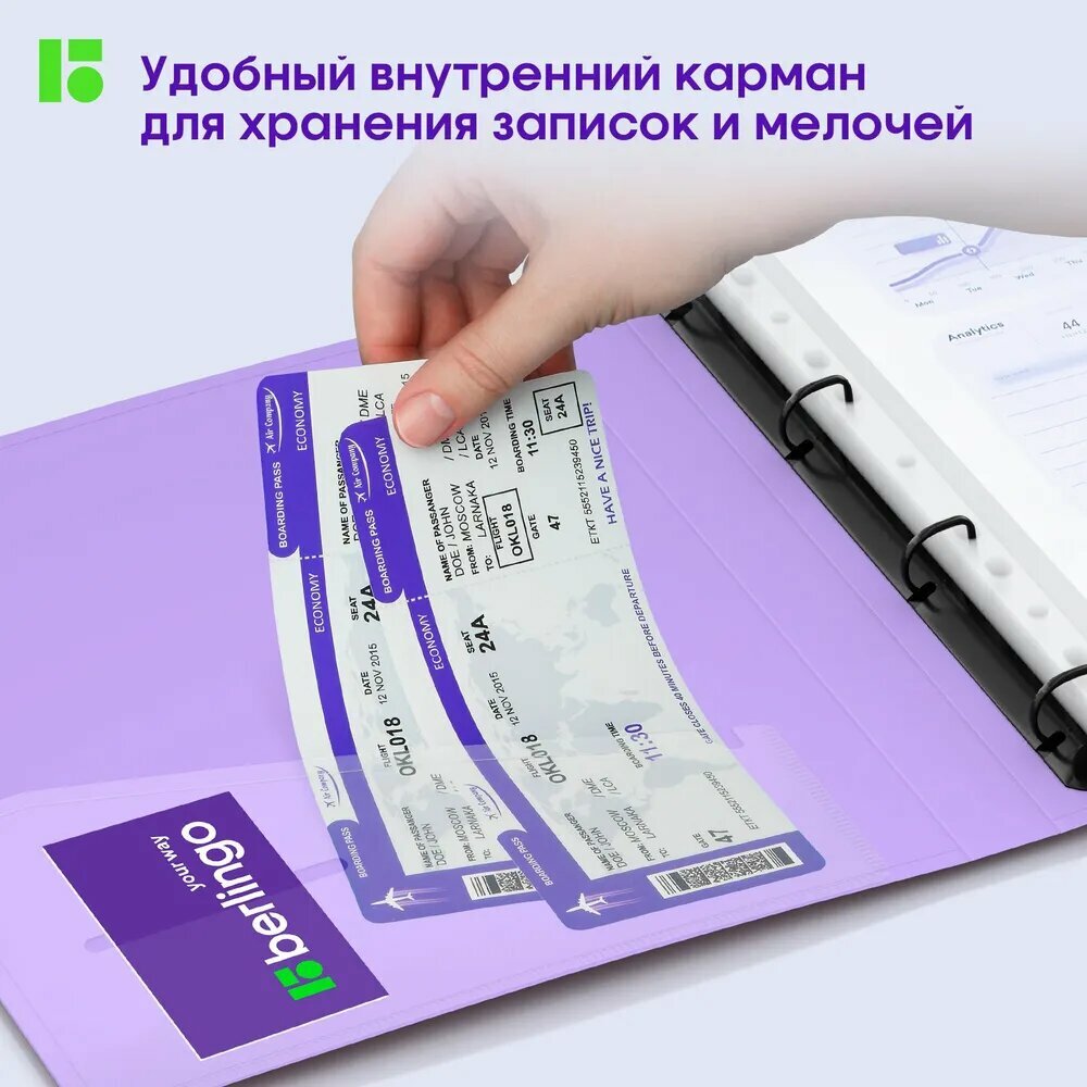 Папка на 4 кольцах Berlingo "Haze" А4, 24мм, 600мкм, D-кольца, с внутр. карманом, сиреневая, софт-тач