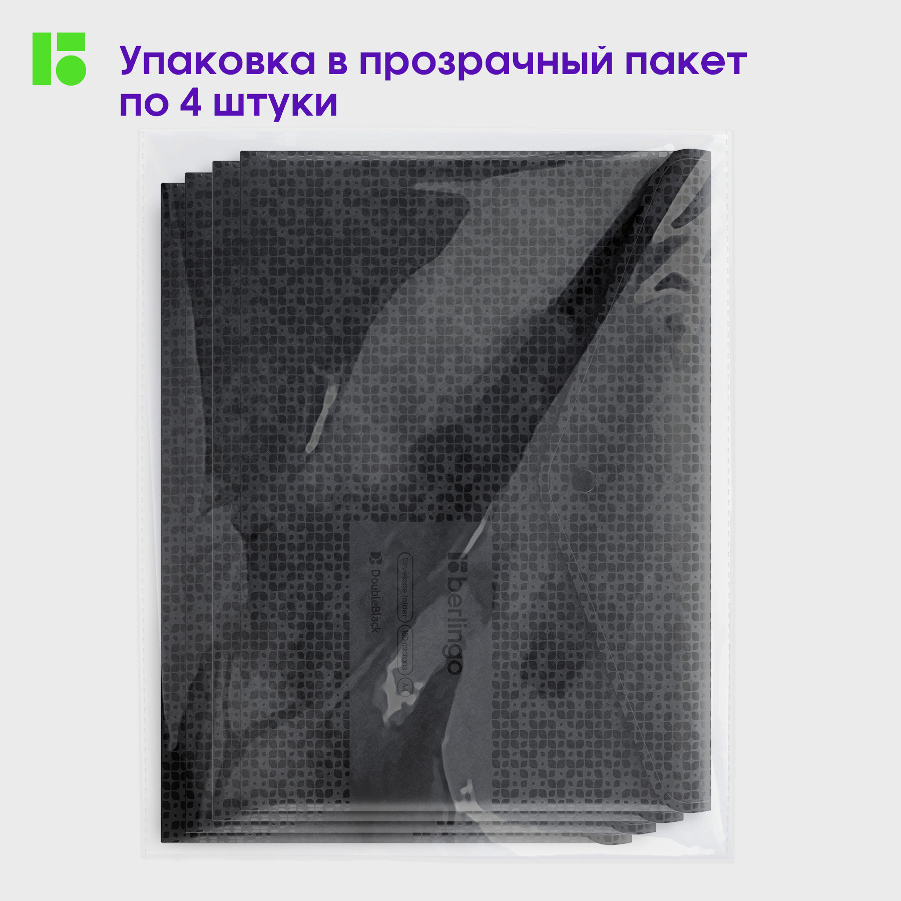Папка-конверт на кнопке Berlingo "DoubleBlack" А4, 180мкм, черная, с рисунком интересное: