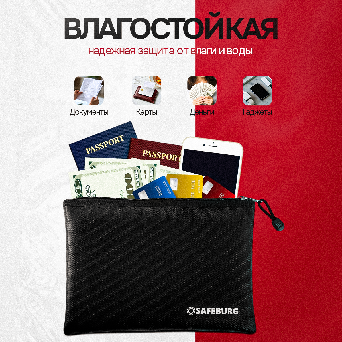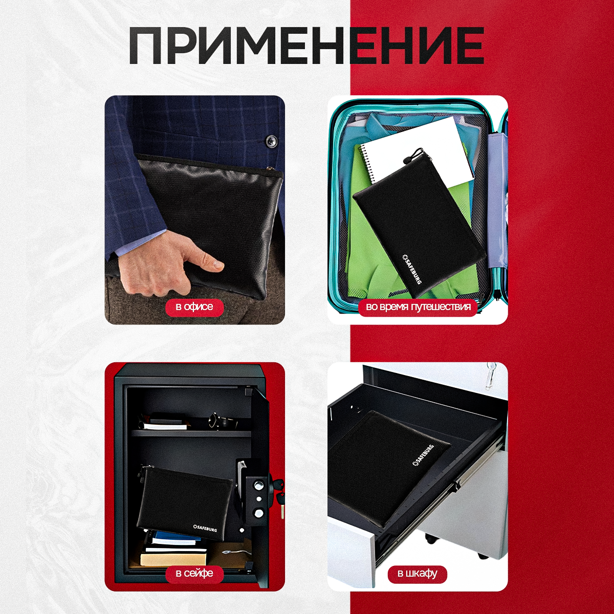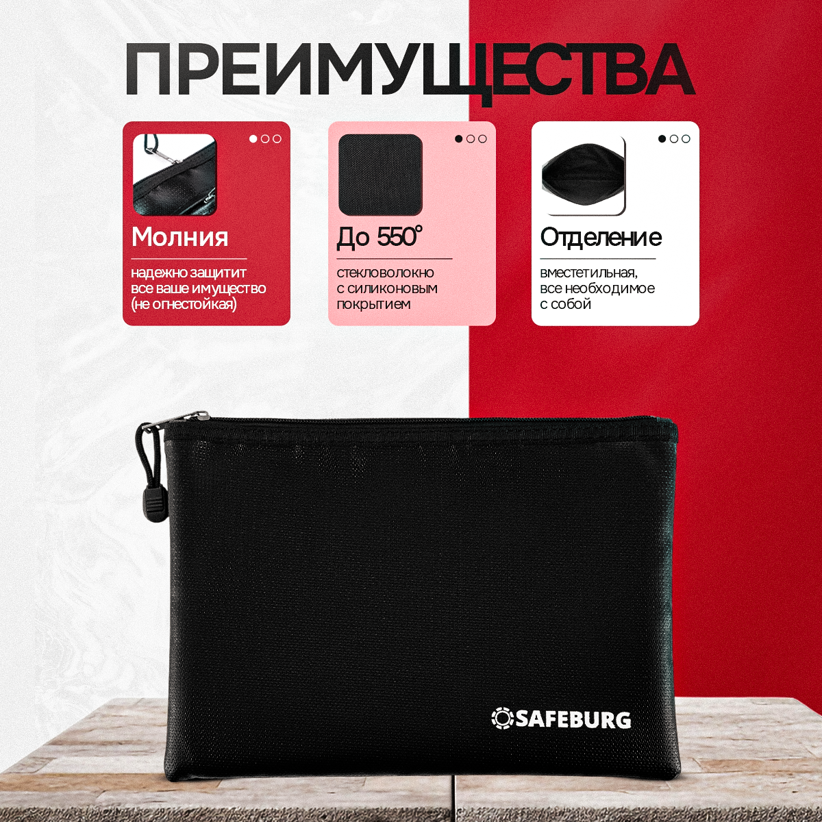 Сумка огнестойкая SAFEBURG MB01 BLACK для документов и ценных вещей, влагостойкая папка интересное: