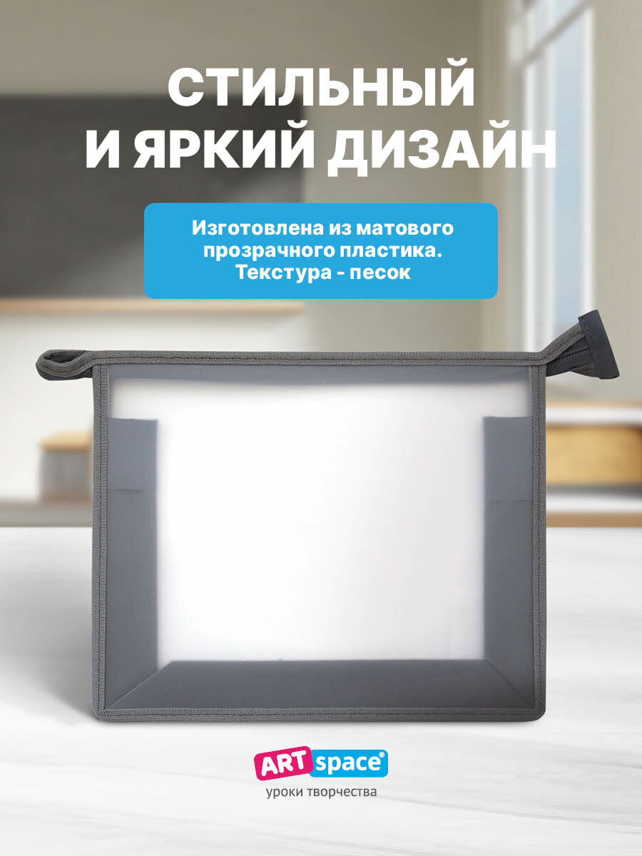 Купить Папка для тетрадей 1 отделение, А5, ArtSpace прозрачная/серая, пластик, на молнии