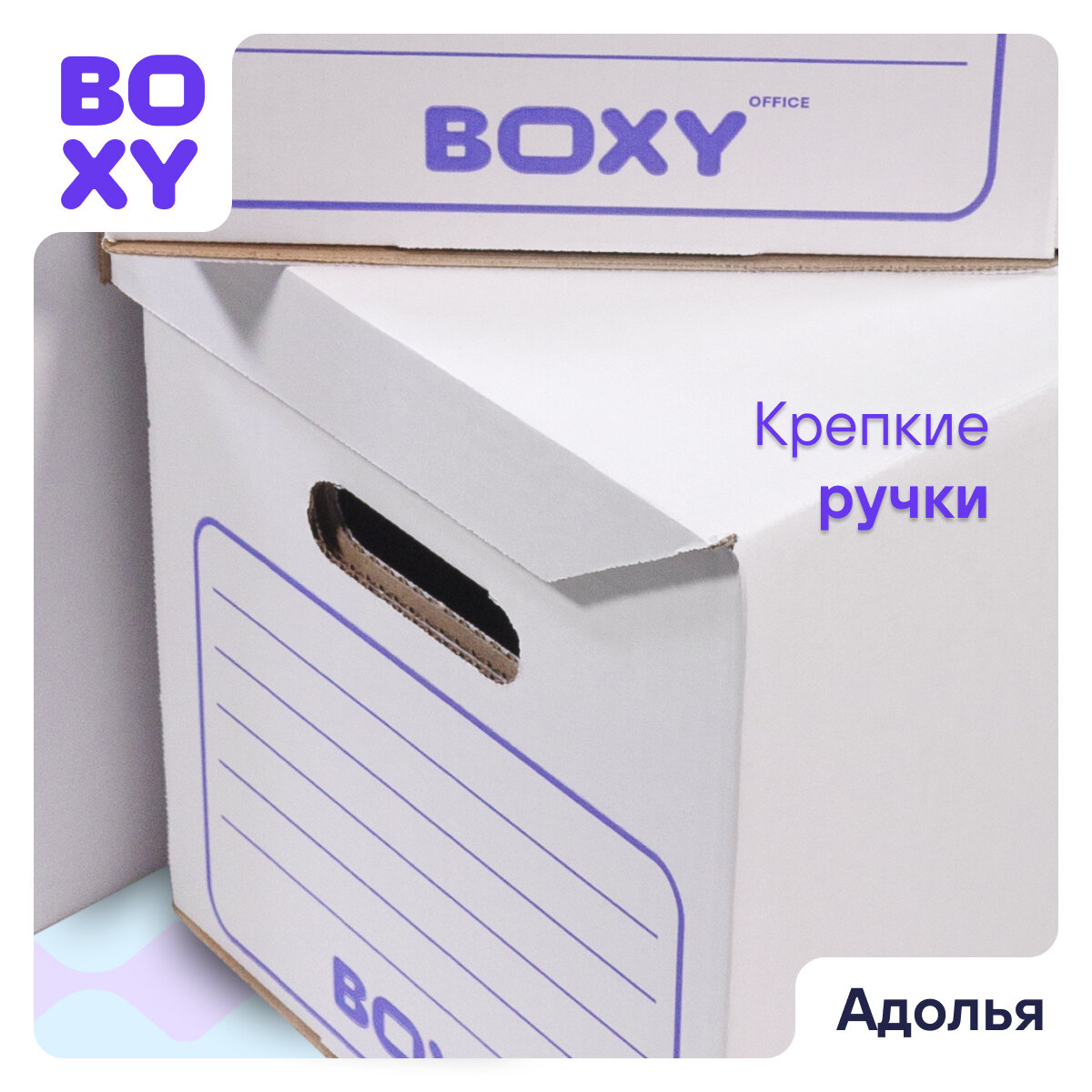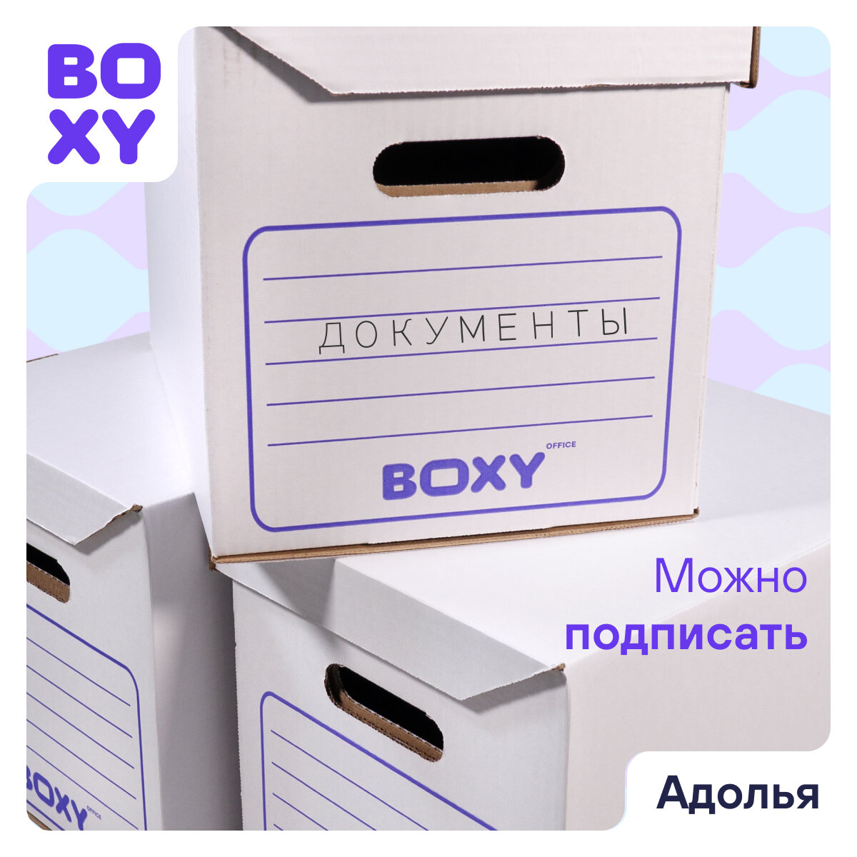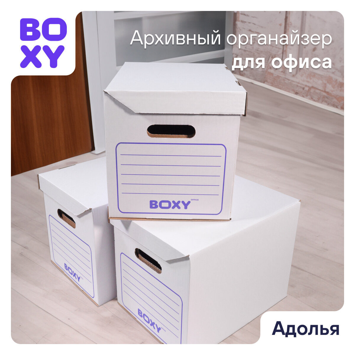 Белая архивная коробка для офиса и дома адолья BOXY, гофрокартон, 34х25х26 см, 3 шт в упаковке интересное: