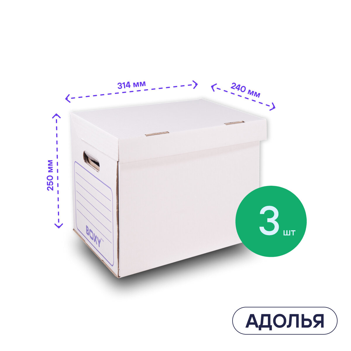 Купить Белая архивная коробка для офиса и дома адолья BOXY, гофрокартон, 34х25х26 см, 3 шт в упаковке
