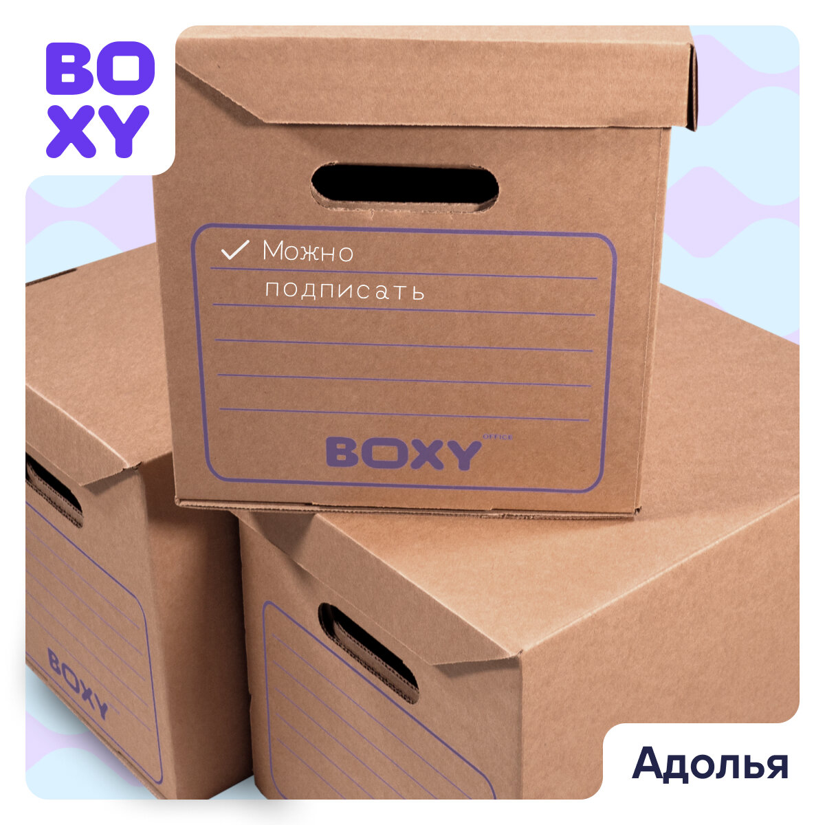Картонная архивная коробка для офиса и дома адолья BOXY, гофрокартон, 34х25х26 см, 3 шт в упаковке интересное: