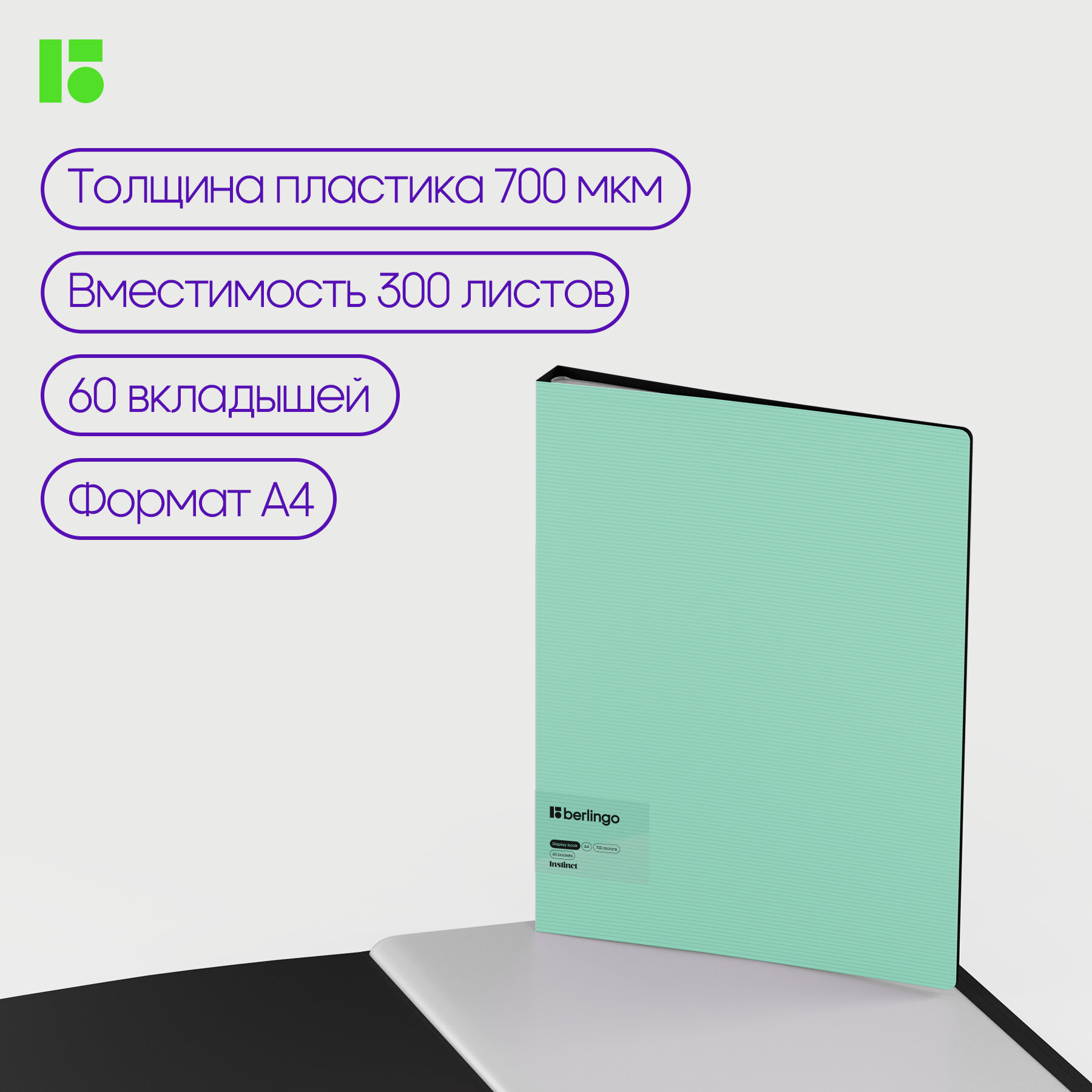 Купить Папка с 60 вкладышами Berlingo "Instinct" А4, 30мм, 700мкм, с внутр. карманом, мятный