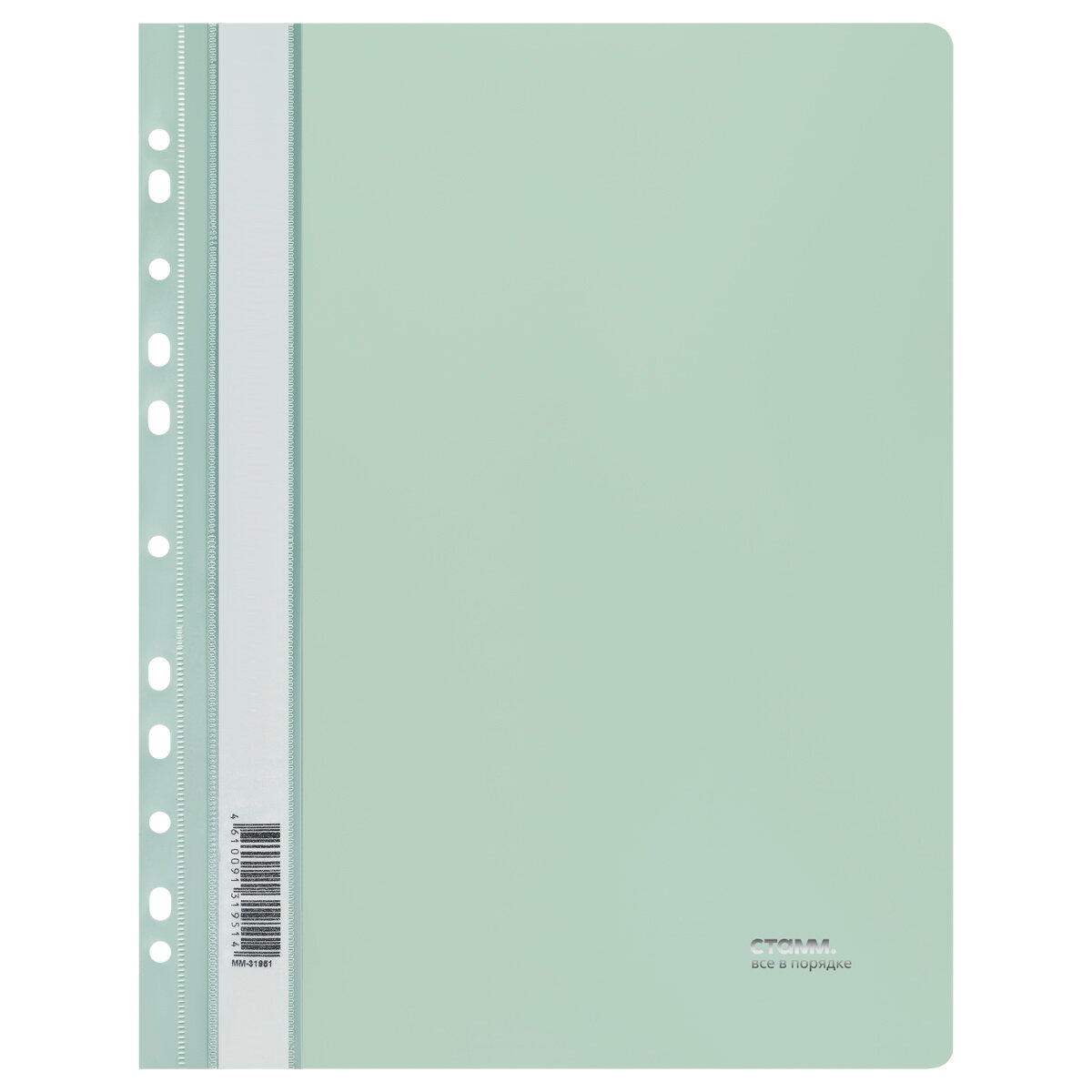 Купить Папка-скоросшиватель пластик. перф. СТАММ "Акцент" А4, 180мкм, эвкалиптовая с прозр. верхом, 10 шт