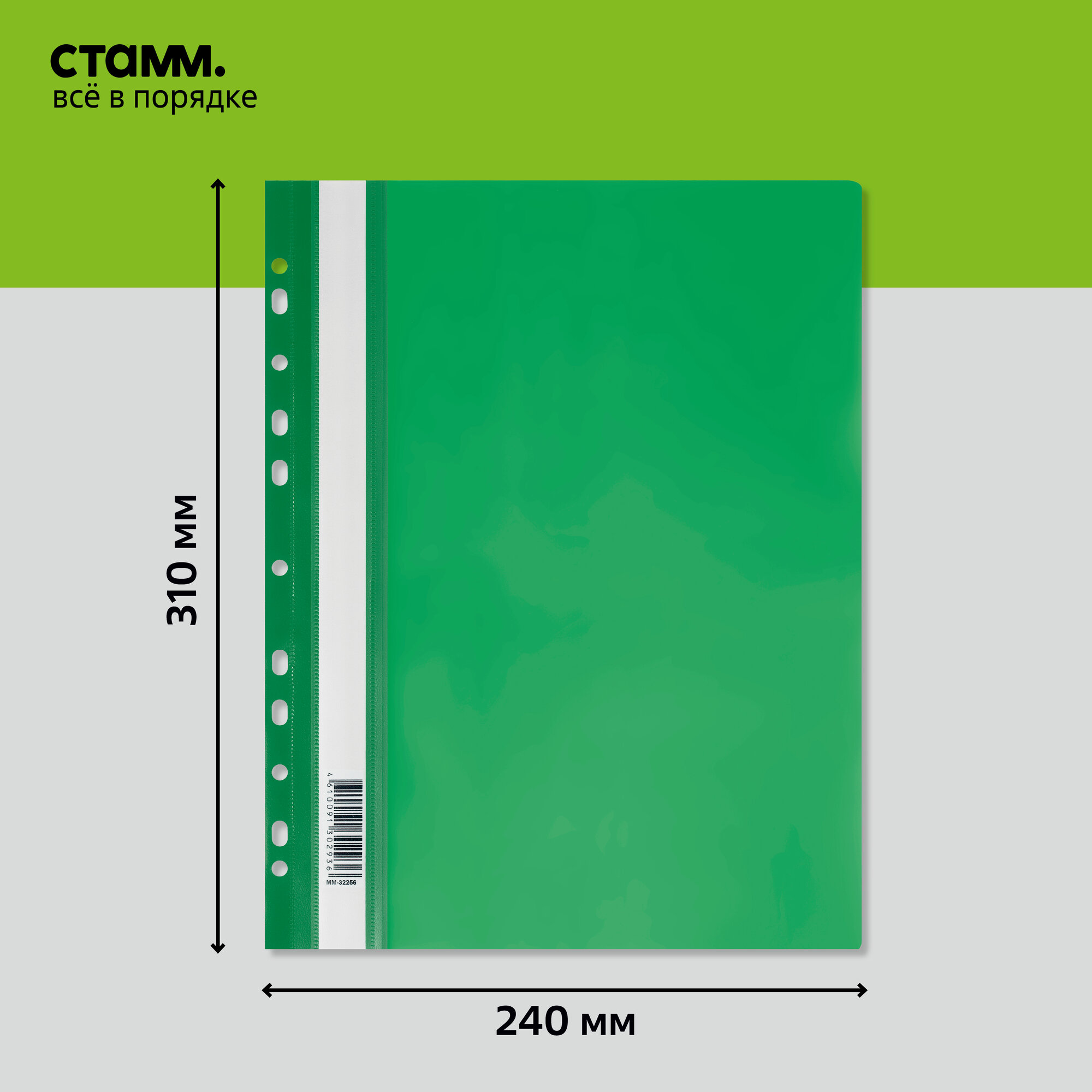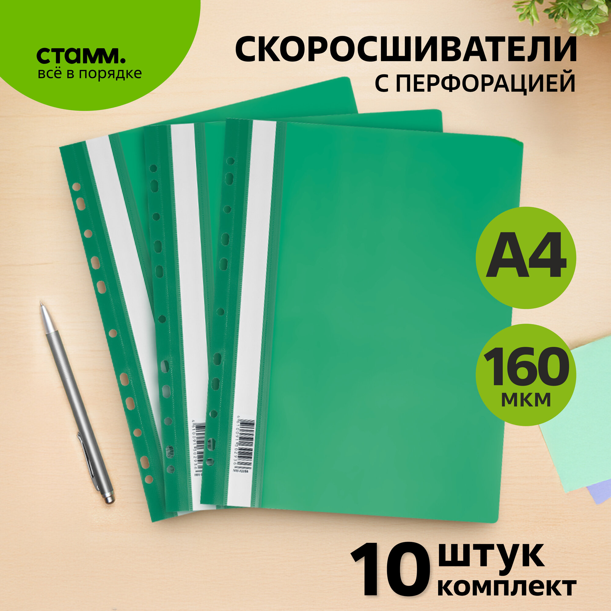 Папка-скоросшиватель с перфорацией СТАММ, А4, 160мкм, зеленая , 10 шт. интересное: