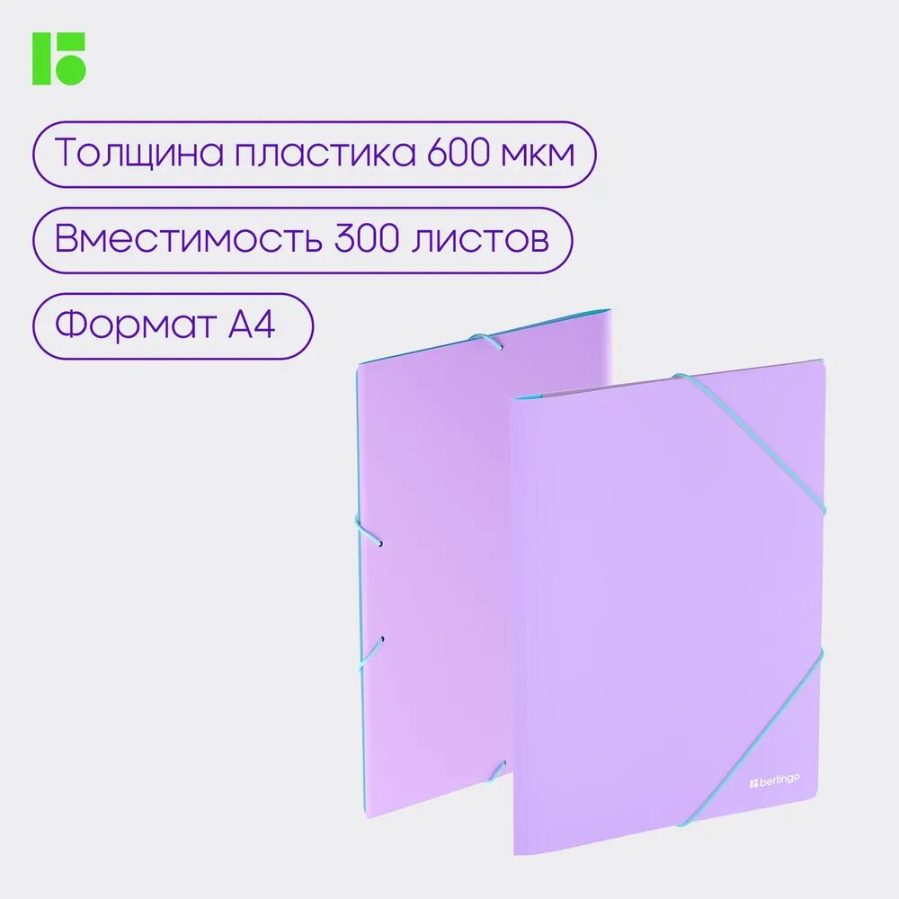 Папка на резинке Berlingo "Haze" А4, пластик, 600мкм, сиреневая, софт-тач интересное: