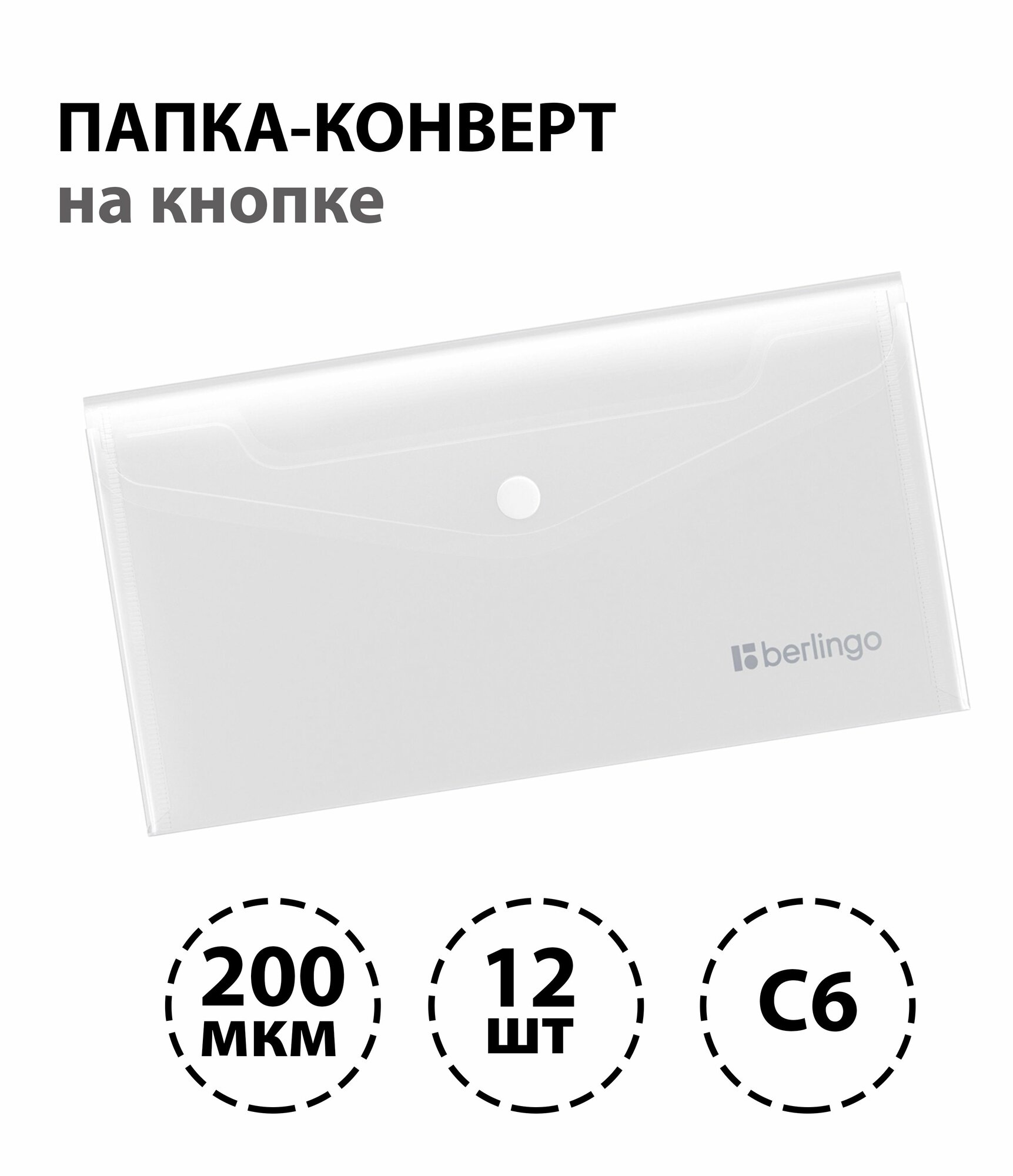 Купить Набор 12 шт. - Папка-конверт на кнопке Berlingo "No Secret", С6, 200мкм, матовая