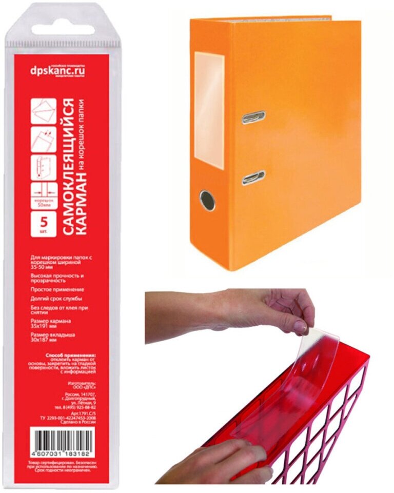 Карман самоклеящийся ДПС, 35*191мм, на корешок папки 35мм и 50мм, 5шт. интересное:
