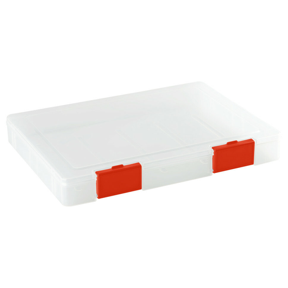 Купить Папка для документов СТАММ А4, 235*310*40мм, пластик, прозрачная, красные защелки, 367573