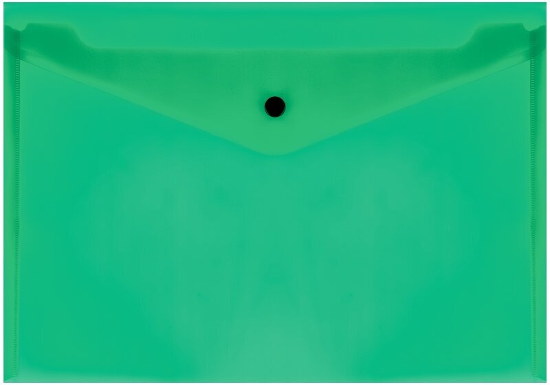Купить Папка-конверт на кнопке СТАММ, А4, 150мкм, прозрачная, зеленая, 10 шт.
