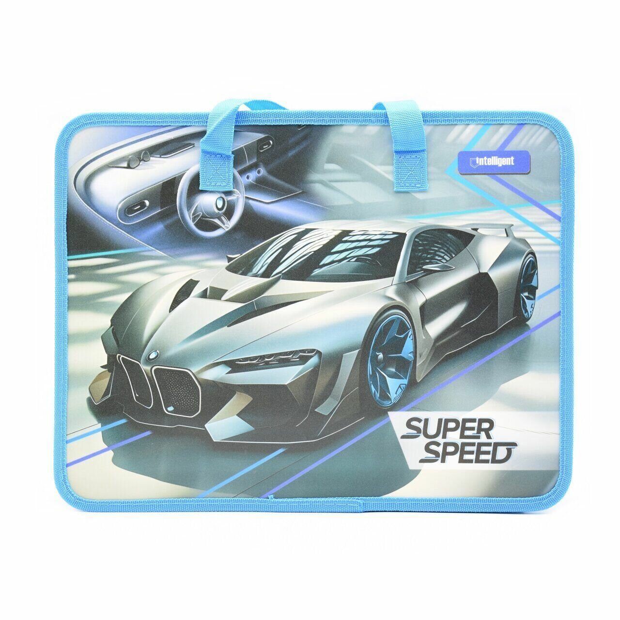 Папка А4 на молнии 1 отделение с ручками "Super Speed" пластик, голубая интересное: