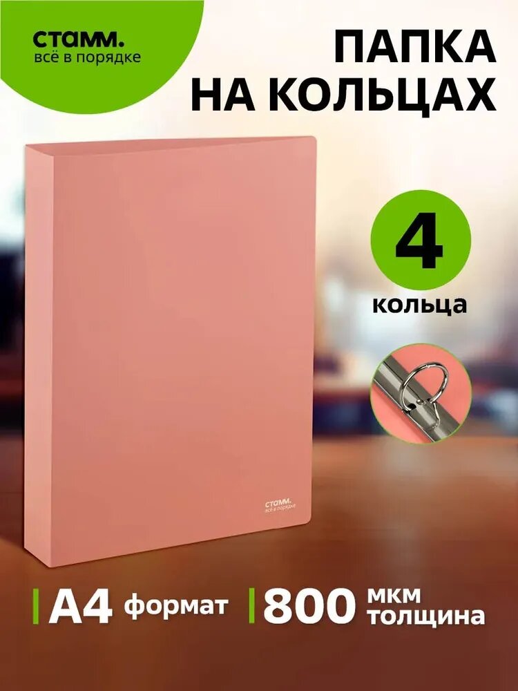Папка на 4 кольцах СТАММ "Акцент" А4, 40мм, 800мкм, пластик, коралловая интересное: