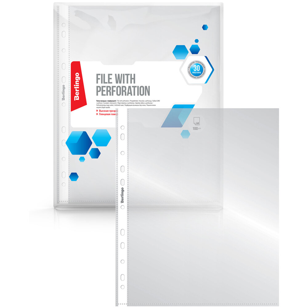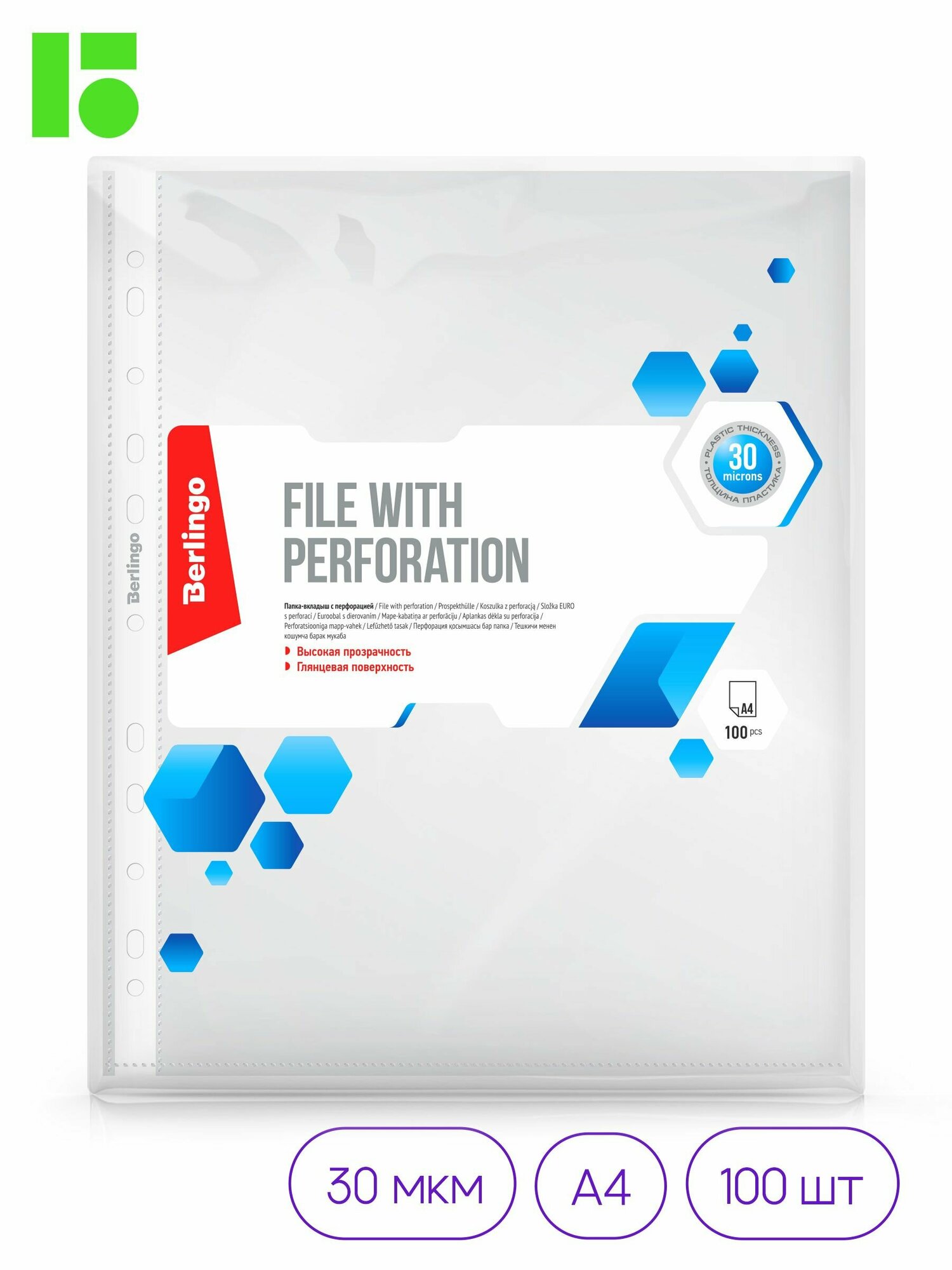 Купить Папка-вкладыш с перфорацией, А4, 30мкм, глянцевая, 100 шт