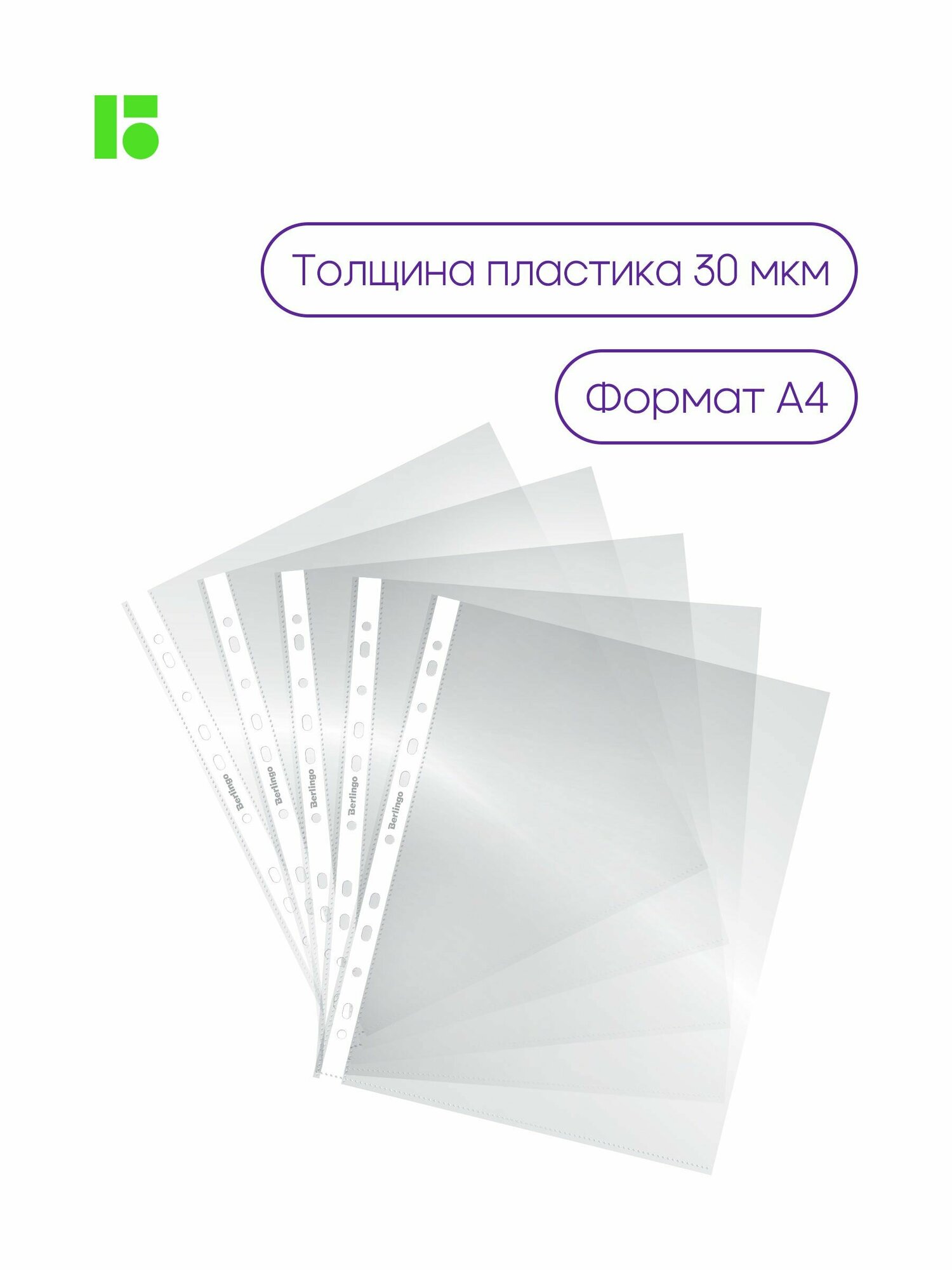 Папка-вкладыш с перфорацией, А4, 30мкм, глянцевая, 100 шт интересное: