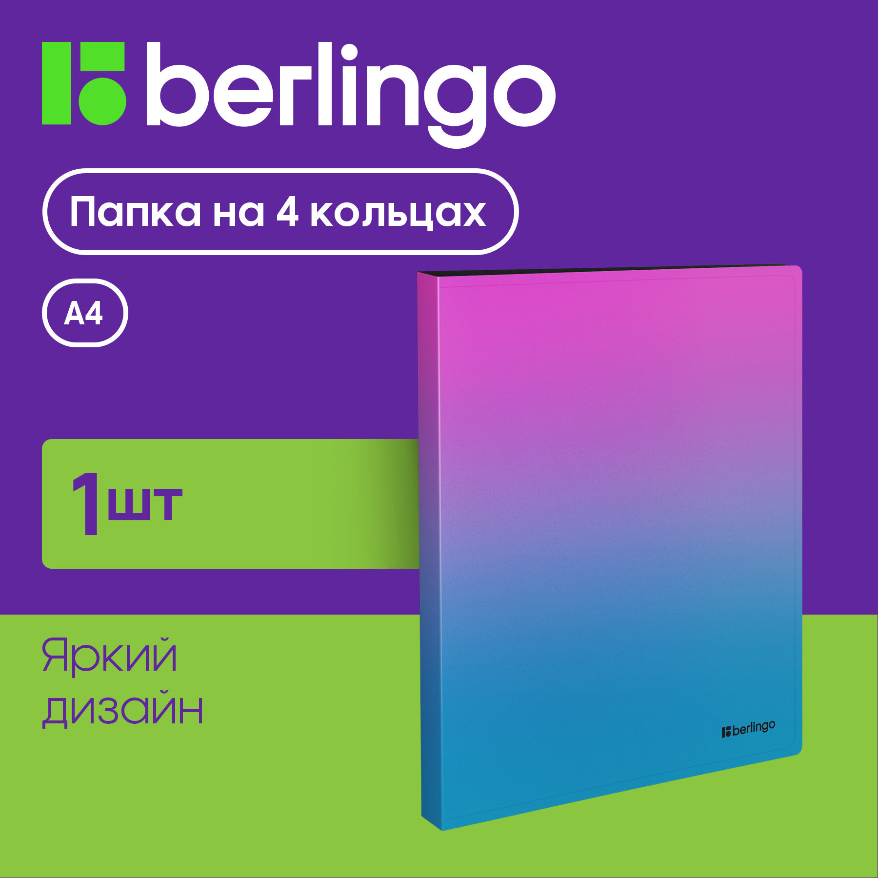 Купить Папка на 4 кольцах Berlingo "Radiance", 24мм, 600мкм, D-кольца, с внутр. карманом, розовый/голубой градиент
