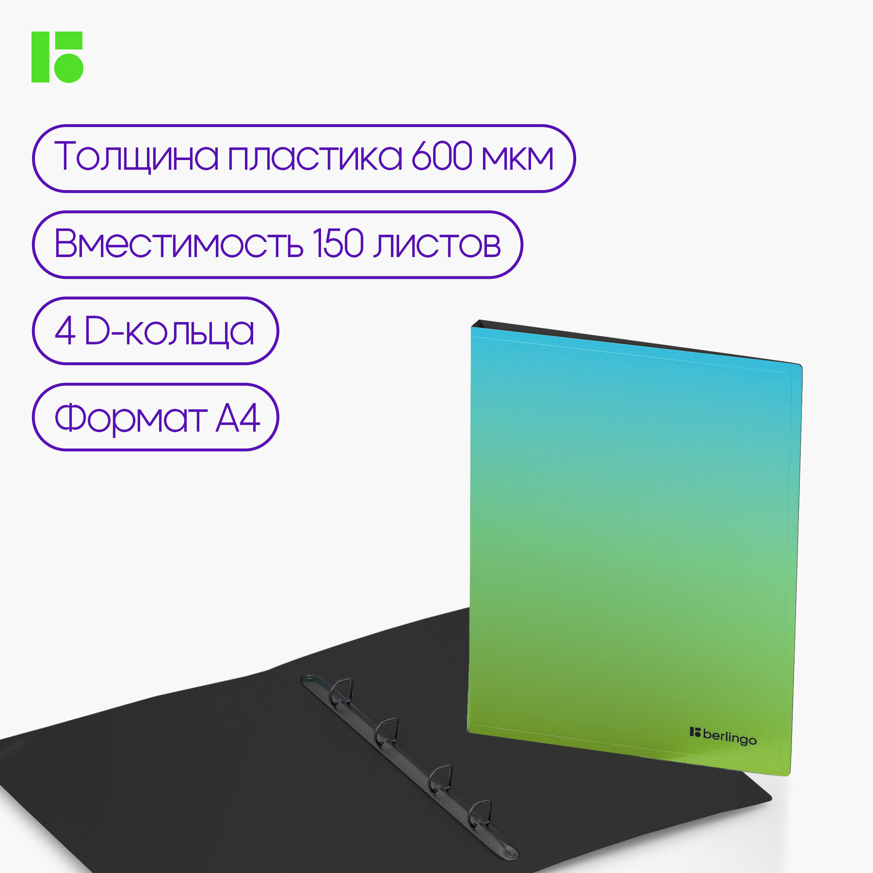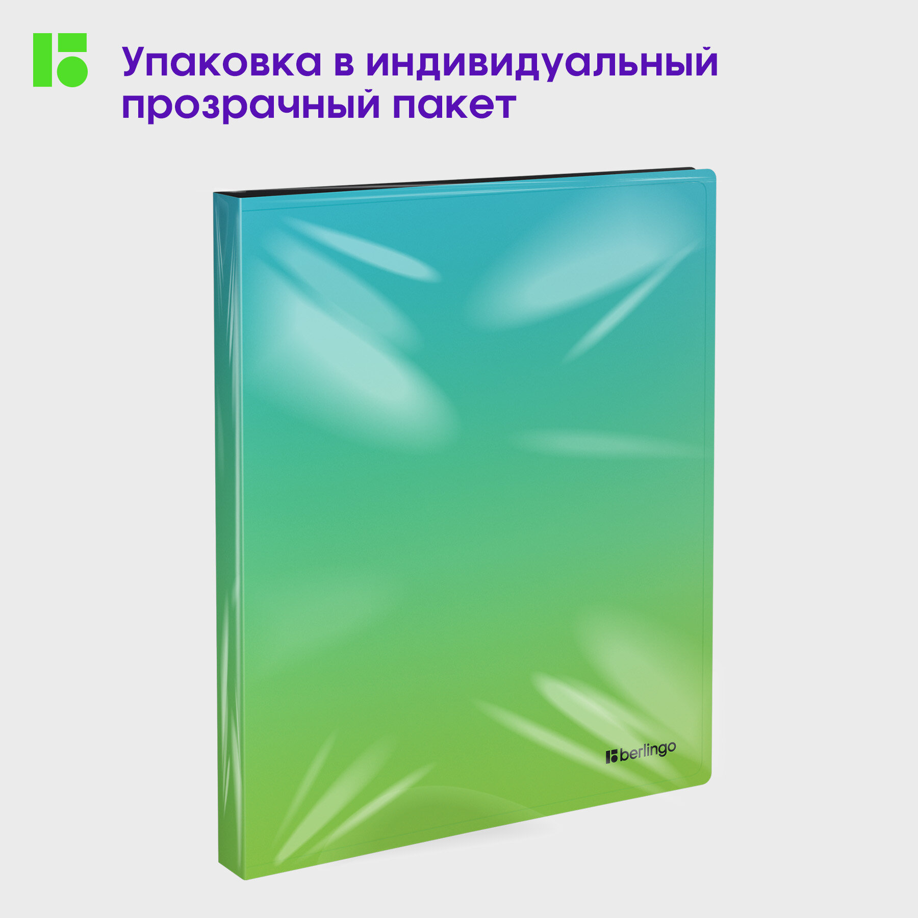 Папка на 4 кольцах Berlingo "Radiance", 24 мм, 600 мкм, D-кольца, с внутр. карманом, голубой/зеленый градиент интересное: