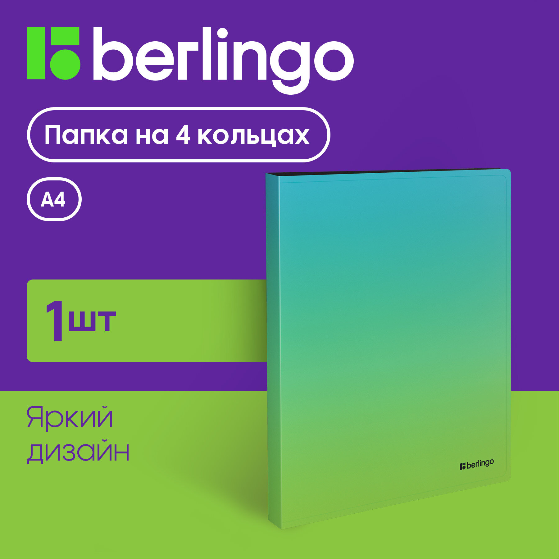 Купить Папка на 4 кольцах Berlingo "Radiance", 24 мм, 600 мкм, D-кольца, с внутр. карманом, голубой/зеленый градиент