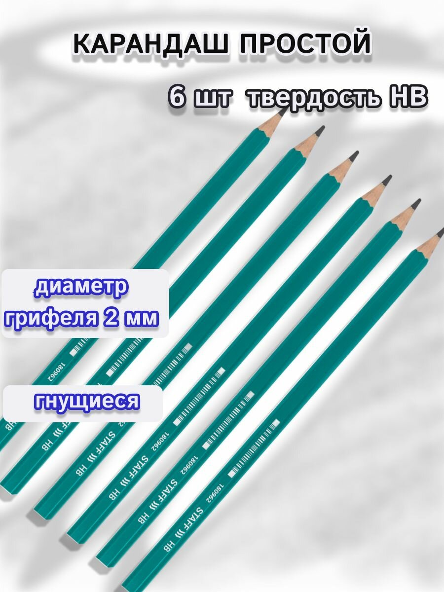 СохранитьНабор карандашей STAFF EVERYDAY, простые, пластик, твердость HB, шестигранные, заточенные, 6 штук интересное: