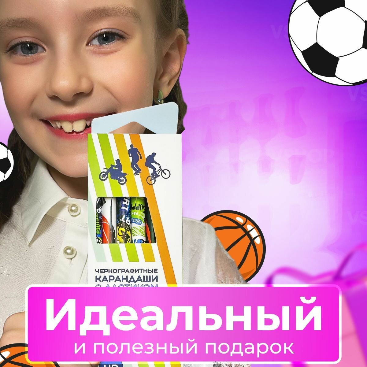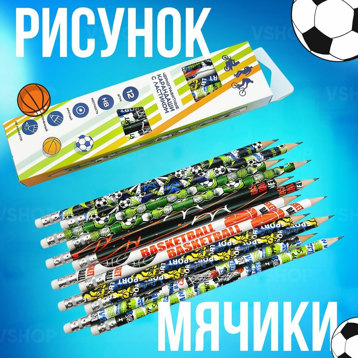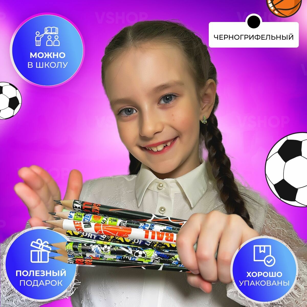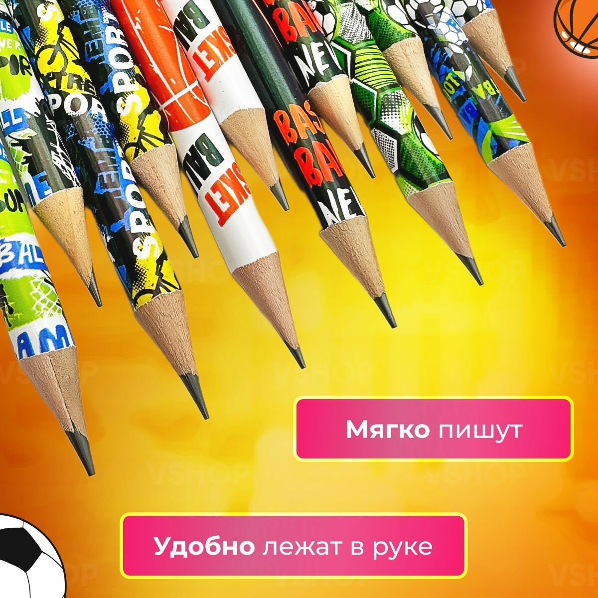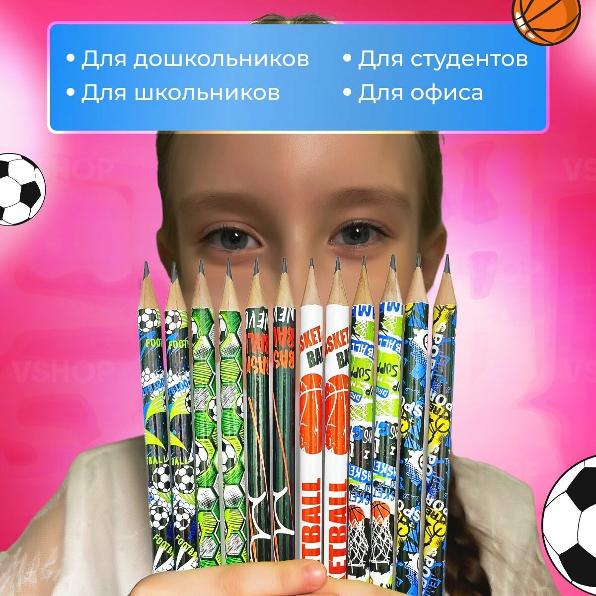 Набор простых карандашей чернографитных с рисунком "Спорт", 12шт интересное: