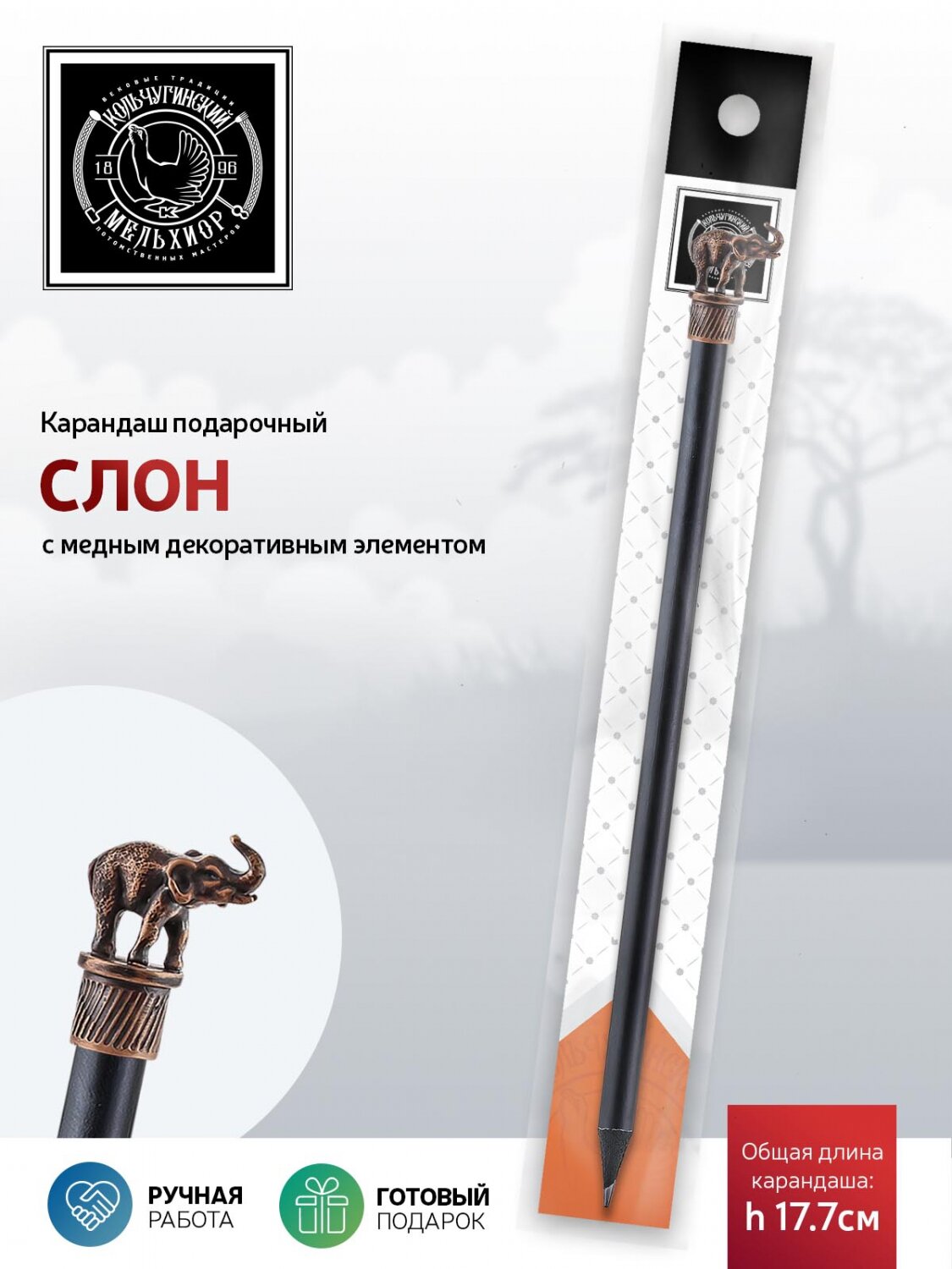 Карандаш чернографитный "Сафари-Слон" медный с чернением интересное: