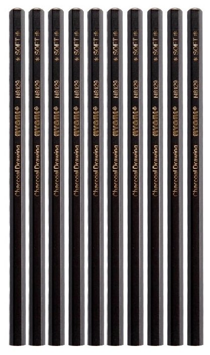 Купить Набор угольных карандашей для рисования и графики, 10 штук (мягкий)