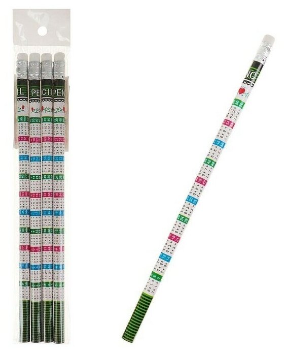 Купить Набор чернографитных карандашей с ластиком и таблицей умножения, 4 штуки