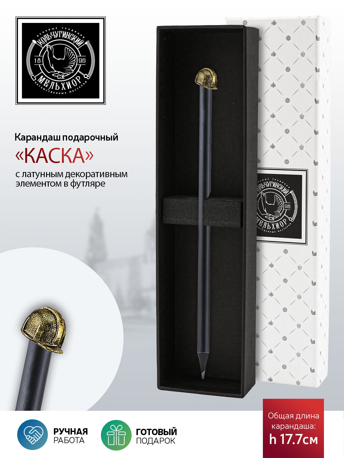 Карандаш чернографитный "Индустриальный Каска" латунный с чернением в футляре интересное: