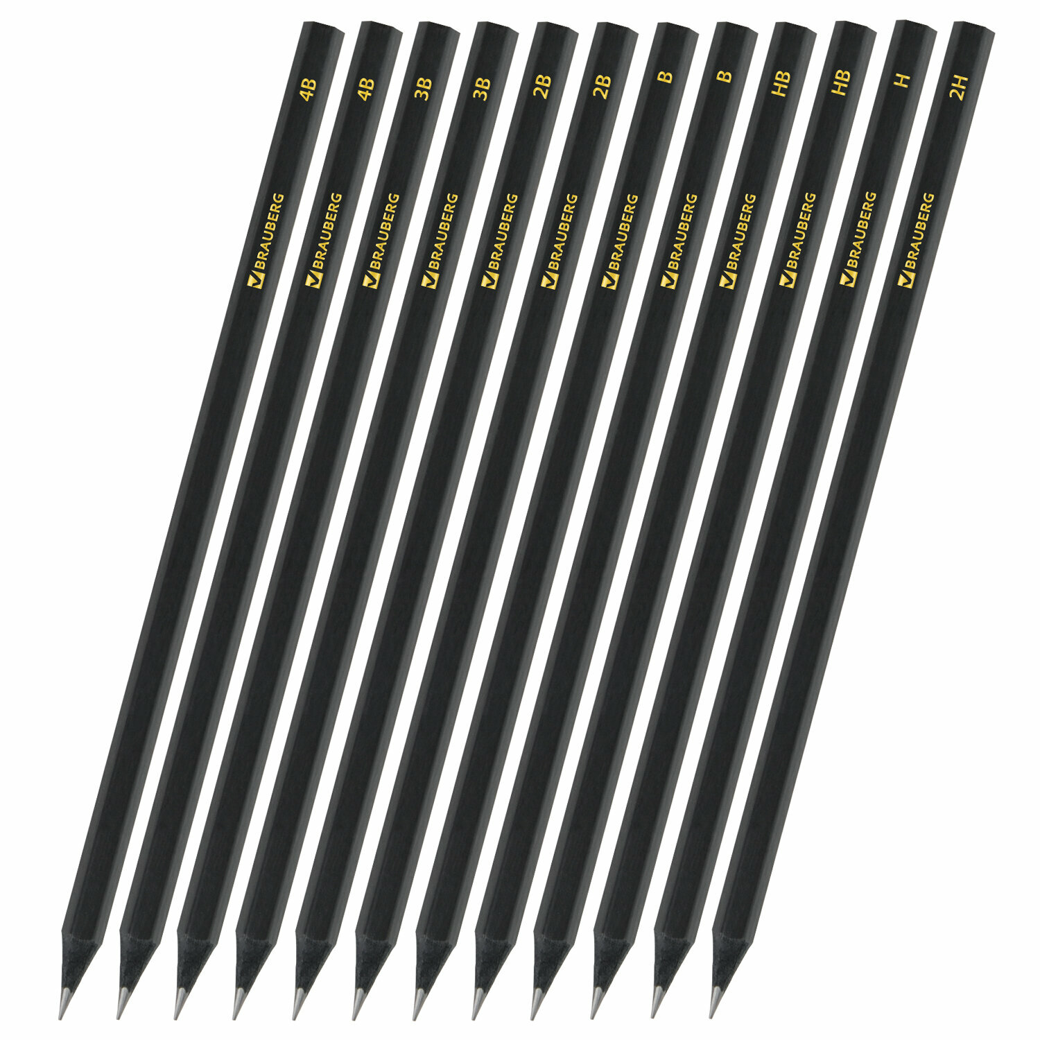 Карандаши простые чернографитные Brauberg Набор 12 шт, Black Jack, 2Н-4В, без резинки / ластика, черные, дерево, заточенные, 180620 интересное: